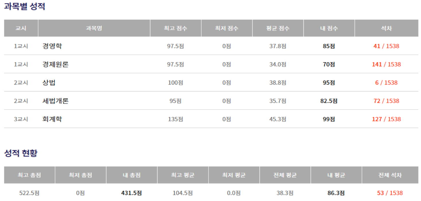 가장 좋아했던 과목이며 연습서 3회독 후 무난하게 붙었습니다. 세법에 대한 이야기는 유예생 파트에서 자세히 하겠습니다.