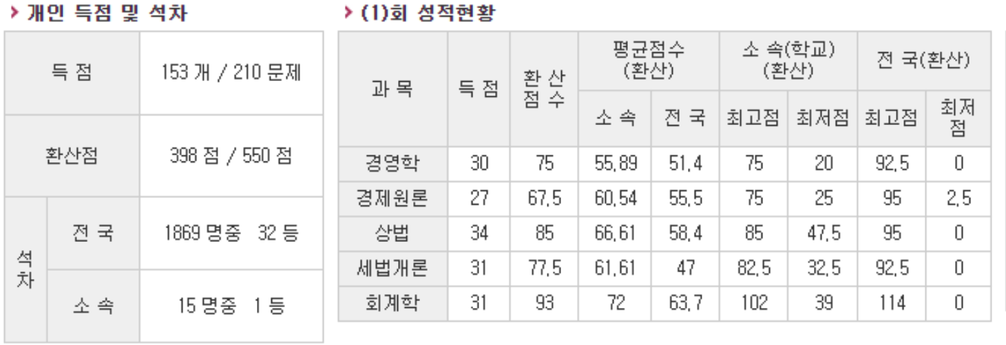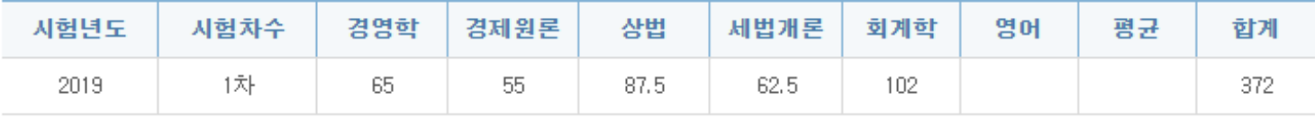 초시합을 위해서 가장 이상적인 것은 회계 세법을 잘하는 것이지만 이것이 여의치 않은 경우 경경상 고득점이 반드시 필요합니다. 저의 경우 상법을 고득점하여 합격할 수 있었습니다.