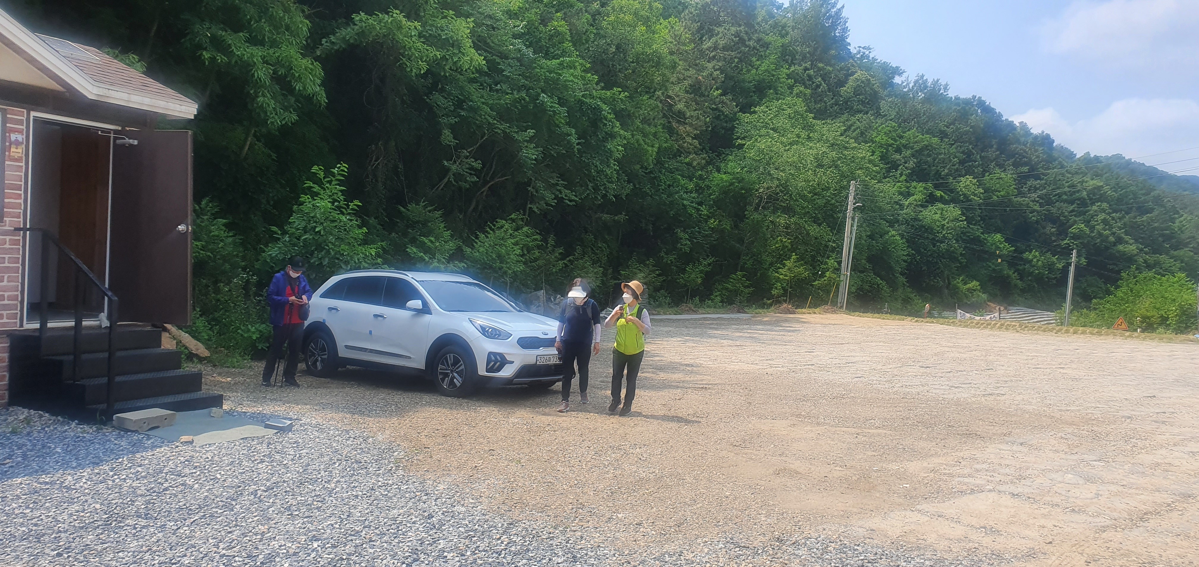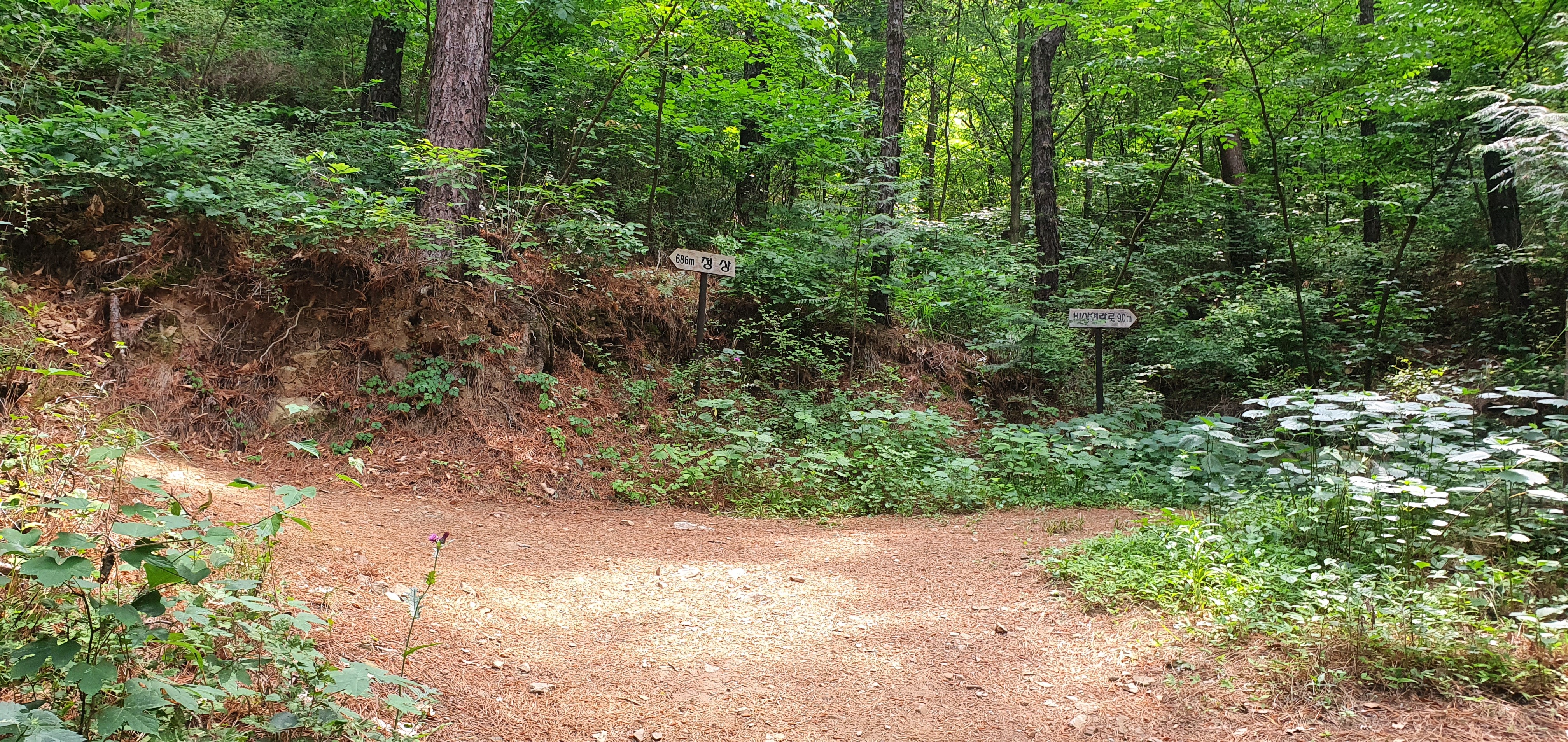 옥천군 안내면에서 안남면으로 넘어가는 고갯길 중간쯤에서 좌측으로 700m정도 공사 중인 농로를 따라 가면 산림욕장의 들머리인 정 대표 전원주택과 주차장이 나옵니다.