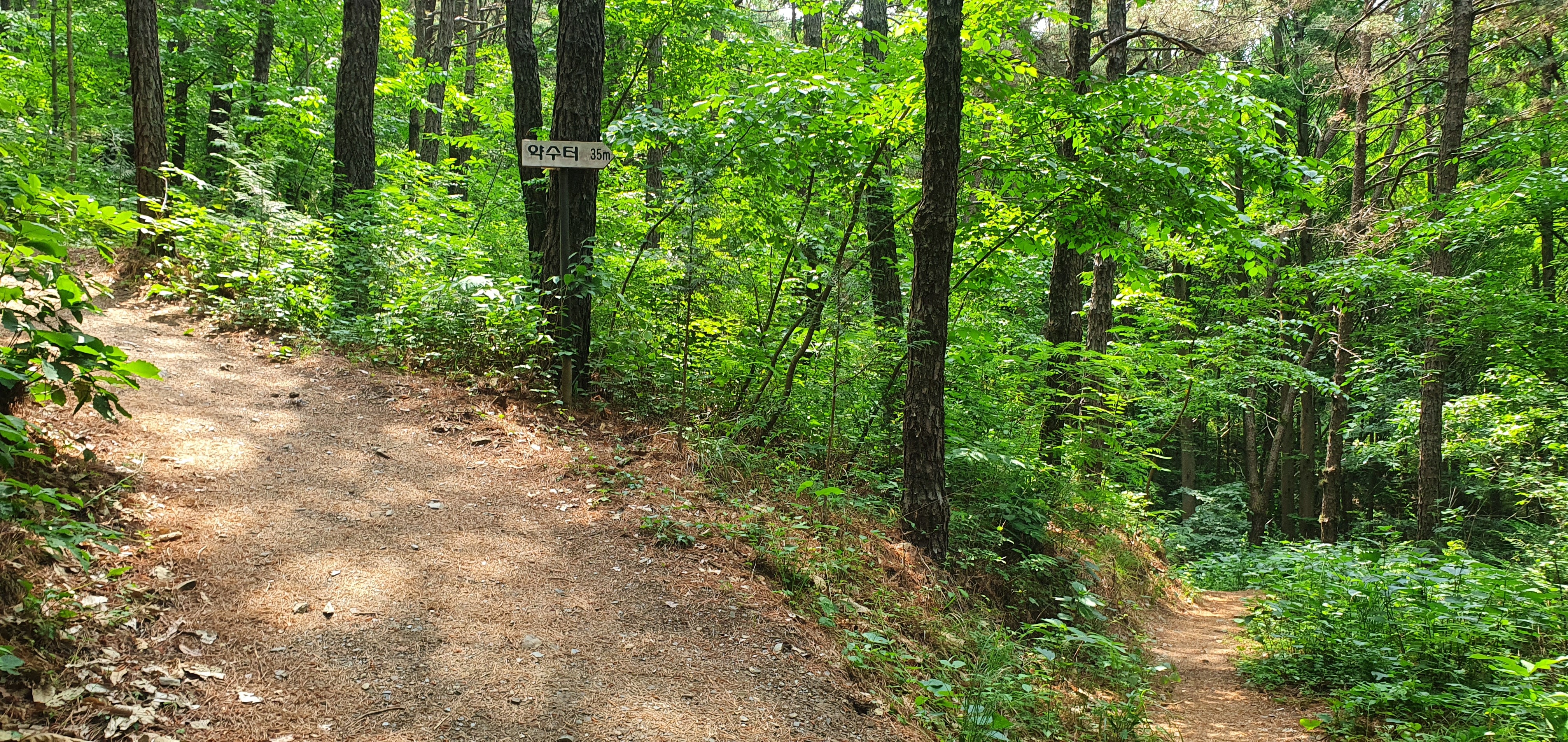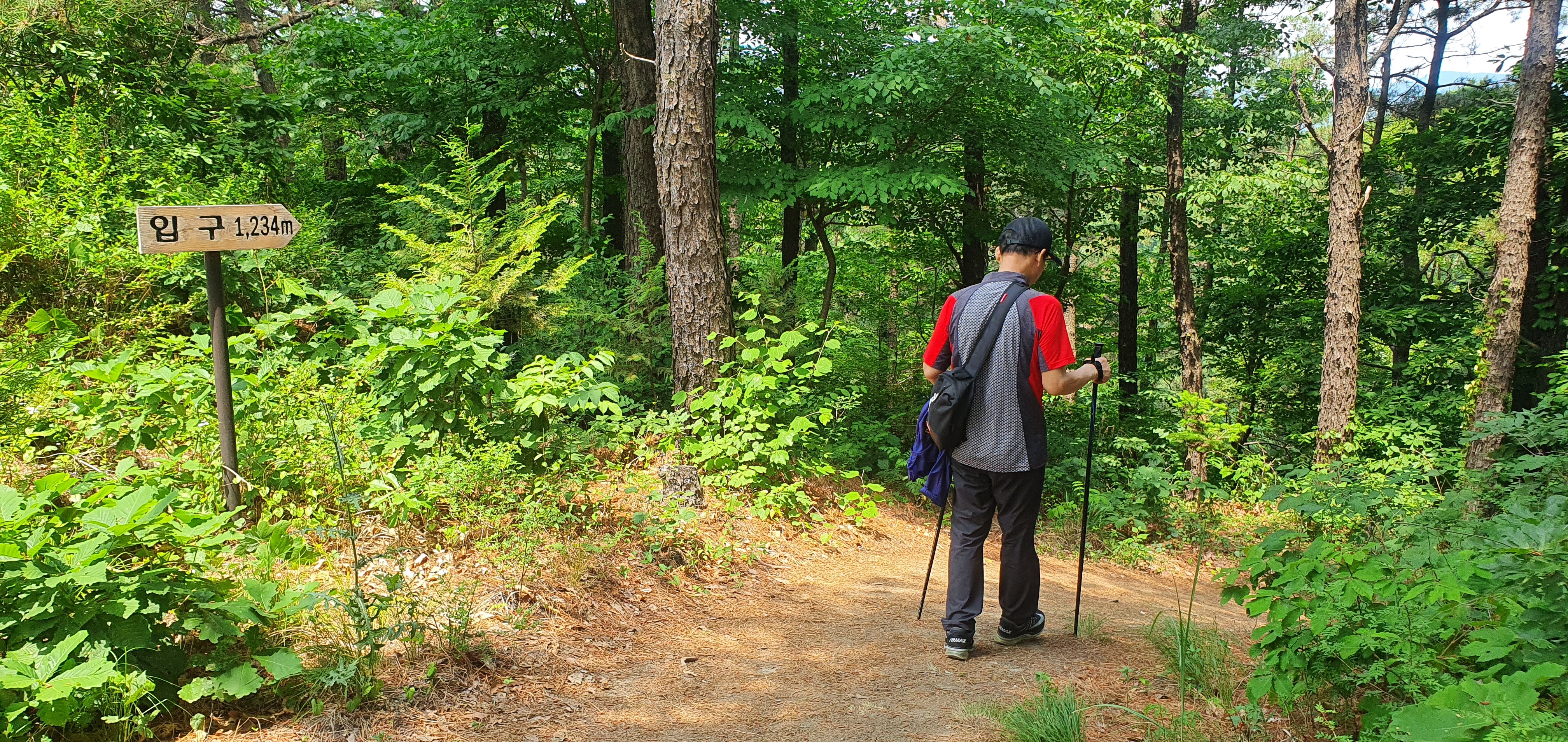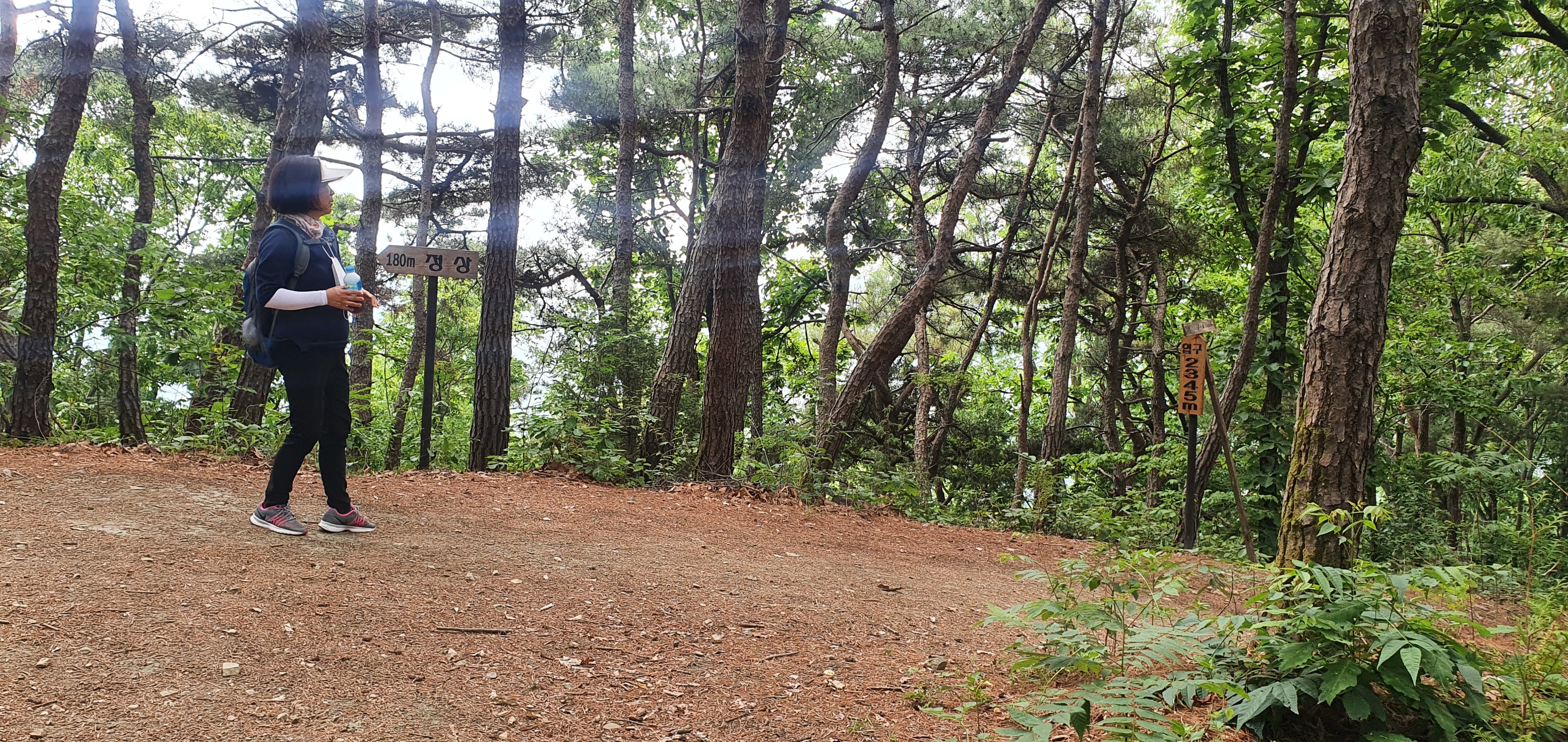 산림욕장 정상까지 왕복; 거리; 약 4,3km, 시간; 약 2시간