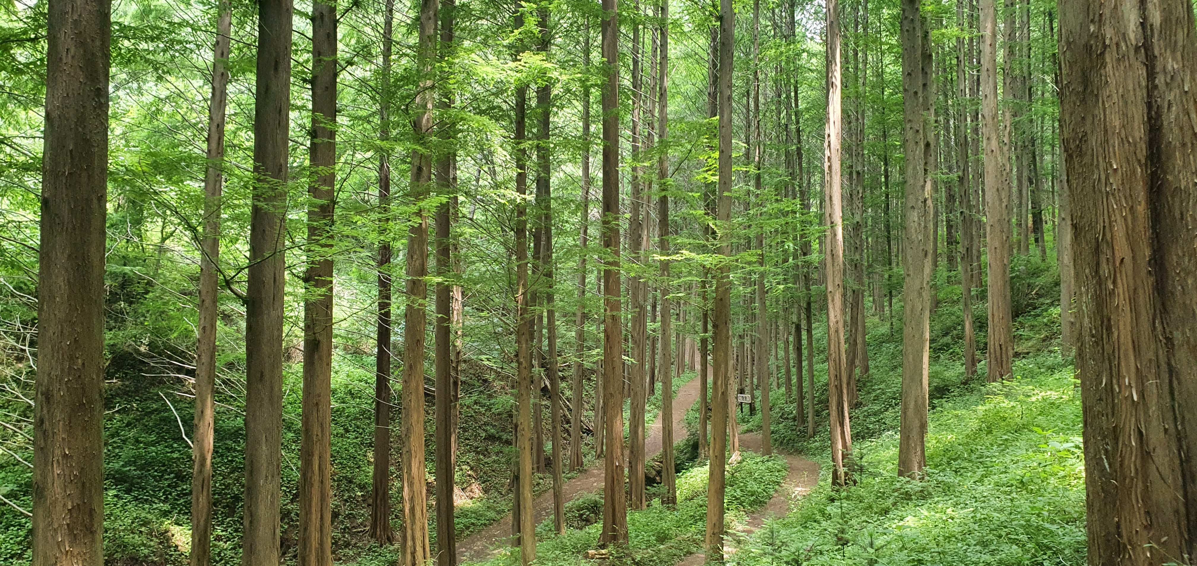 피톤치드 내뿜는 완만하고 부드러운 편백나무 숲길과 메타세쿼이아숲길을 걸으며 산림욕을 즐기수 있다.