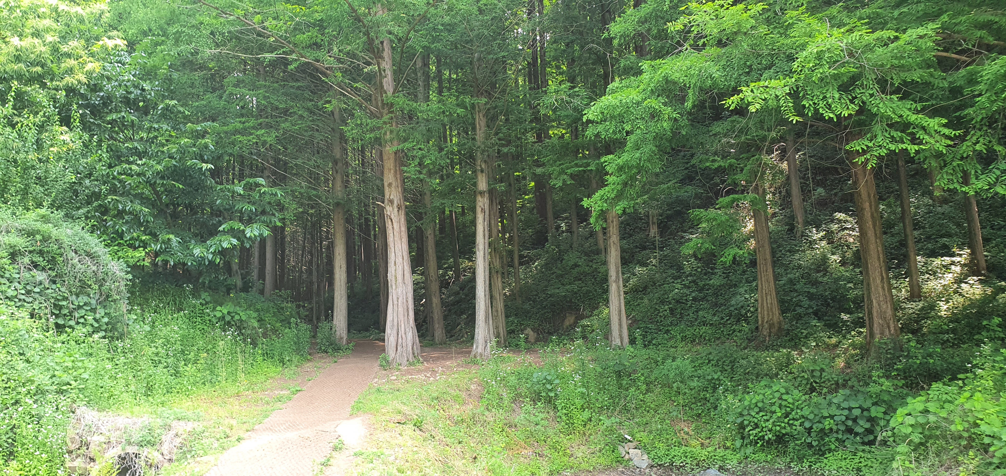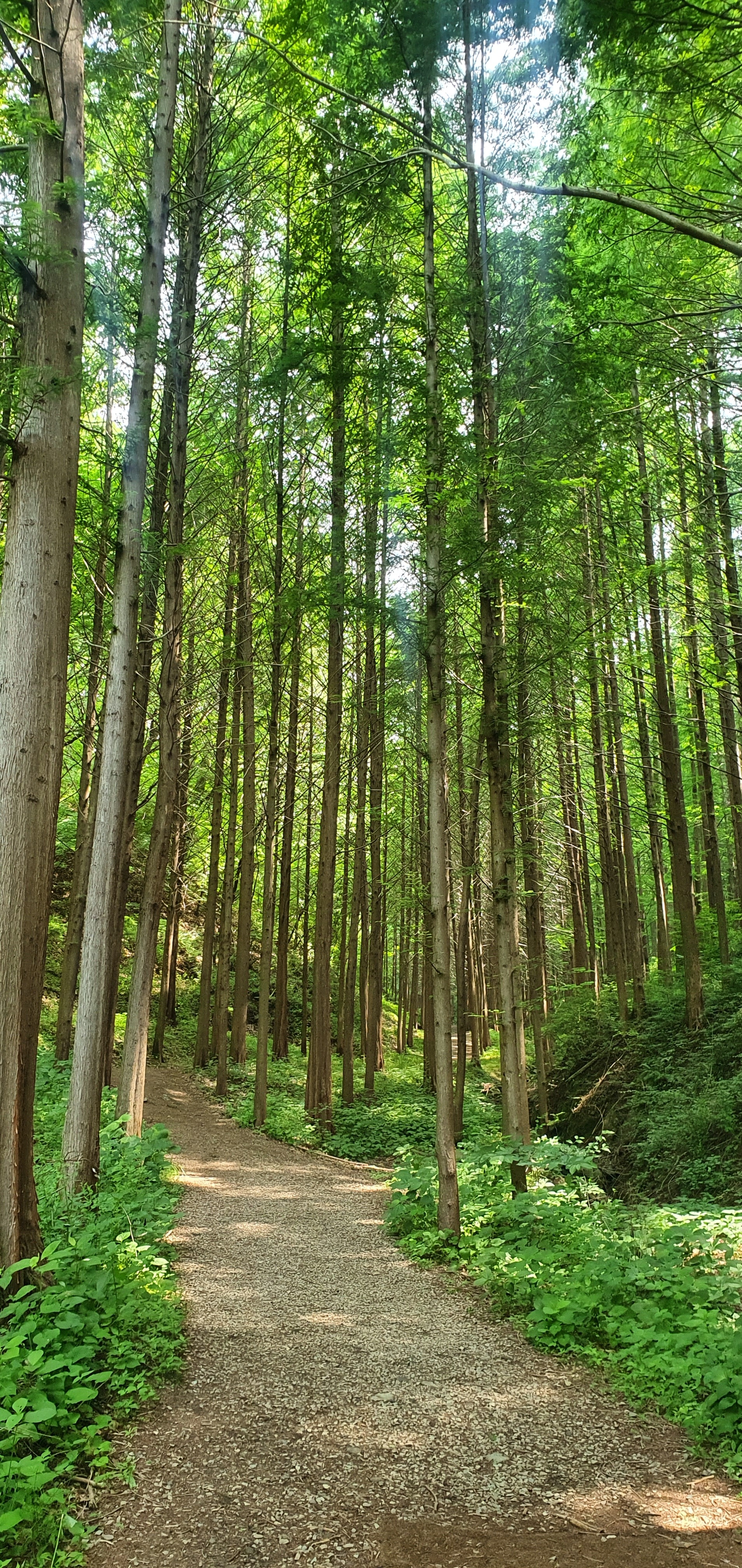 화인산림욕장은 메타세쿼이아숲 사이에 지그재그로 길이 나있어 특유의 멋과 향을 제대로 느낄 수 있는 곳입니다.