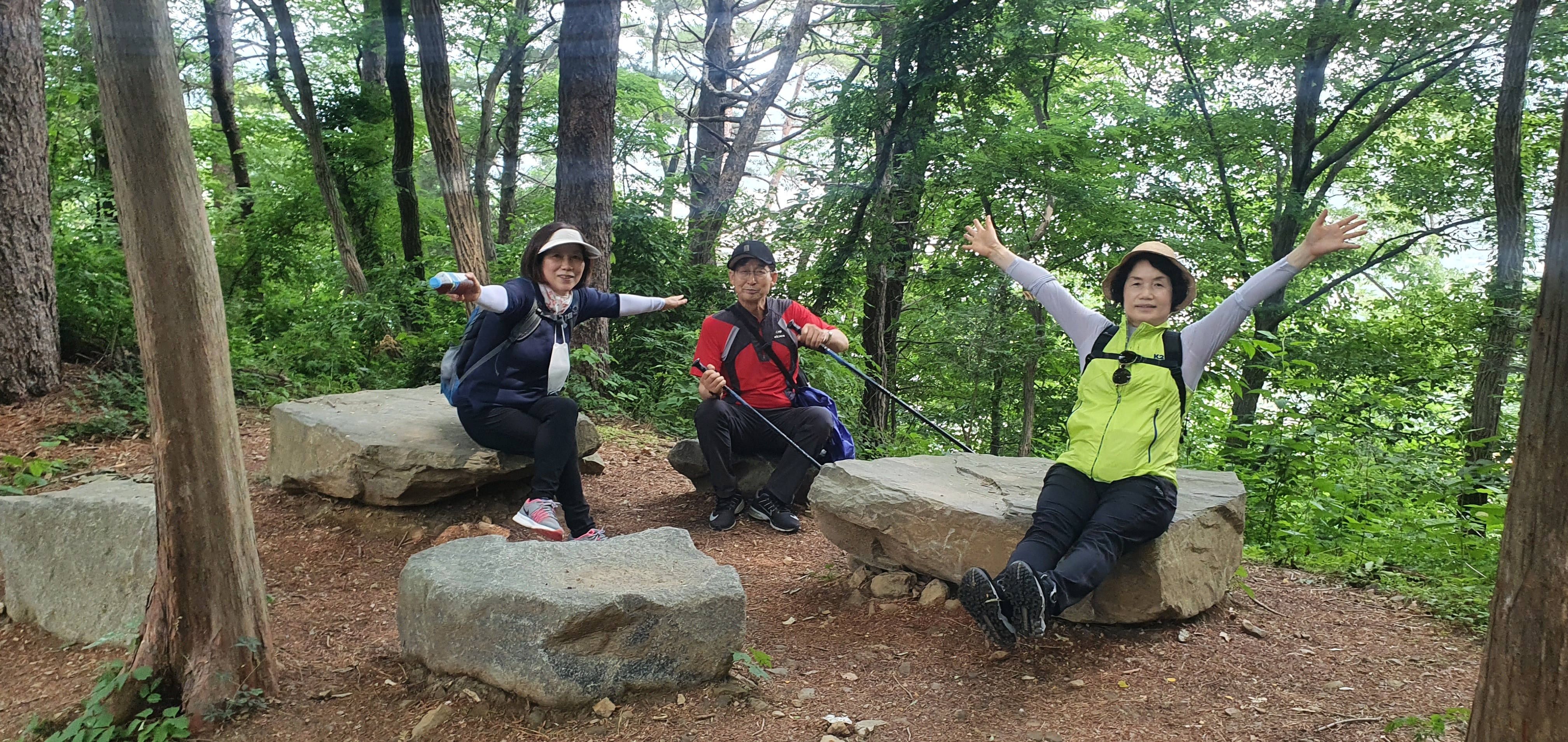 화인산림욕장 반완점으로 이동중 쉼터에서 기념촬영 한컷!!!