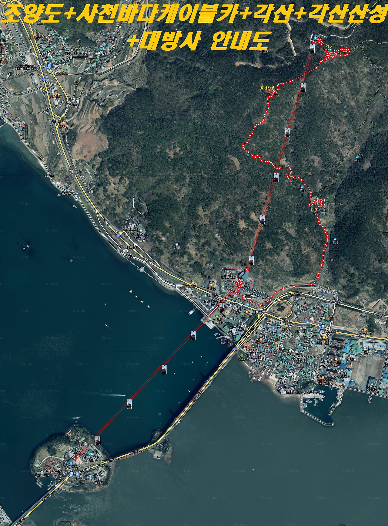 아라마루 아쿠아리움+초양도+각산+각산산성+대방사+사천바다케이블카 안내도 ▼