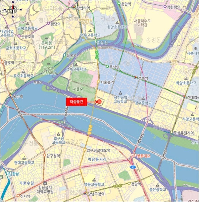 | 교통 | ㆍ트리마제 주차장(68m)ㆍ성수1가1동 공영주차장(169m)ㆍ홍성빌딩 주차장(241m)ㆍ성수 주차장(309m)ㆍGS타임즈 메가박스 성수 주차장(362m)ㆍ서울의숲공영주차장(365m)ㆍ에피소드1오피스텔 민영 주차장(382m)ㆍ강변공영주차장(413m)ㆍ서울숲포휴 주차장(418m)ㆍ주차장(435m) |