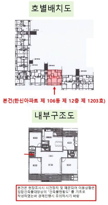 | 서울 동대문구 청량리동 60 한신 106동 12층 *청량리중학교서측인근위치 *부근대규모아파트단지및단지내상가,다세대주택등의공동주택,근린공원,각급학교등혼재 *차량출입가능 *인근시내버스(정)소재 *대중교통사정보통 *부정형완경사지내자체지반등고평탄지 *북서측제기로,북측홍릉로24길등각각접함 *도로접함 *도시가스보일러개별난방 *도시지역 *3종일반주거지역 *가축사육제한구역 *교육환경보호구역(2020.04.02)(상대보호구역) *교육환경보호구역(학교환경위생정화구역에대한최종확인은관할교육청에확인이필요한사항임) *상대보호구역 *절대보호구역 *대공방어협조구역(해발134m(지반+건축+옥탑등)) *과밀억제권역 | 대지 45.62/37806(13.8평) 960,000,000원 건물 114.95(34.77평) 320,000,000원 방4,욕실2 - 총20층 - 승인:1997.12.16 - 보존:1998.02.07 *9개동960세대 |