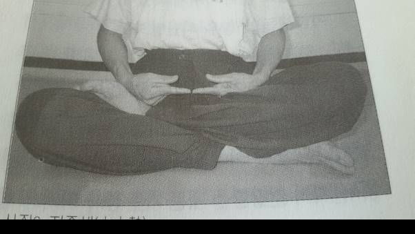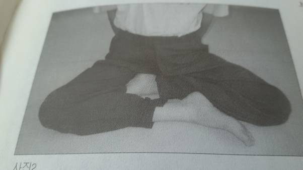 양 발을 십자로 하거나, 포개어 앉는다는 것은 반가부좌 이상을 말한다(사진1). 책상다리라고 하는 일반적인 자세는 수행에 적합한 자세는 아니다. 물론 이 자세는 ‘호흡’이라는 구체적인 방법에 대해서 그렇고, 명상이나 감각수행에서는 (사진2)와 같은 자세를 변용할 수 있다.