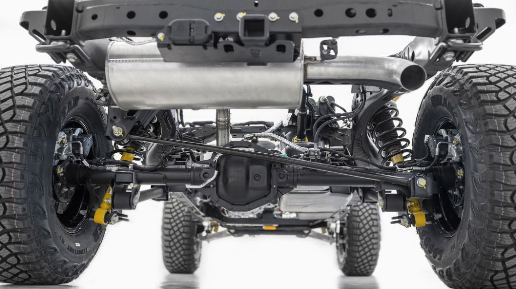 The High-Performance Off-Road Stability Suspension (HOSS) comes on the Wildtrak and Badlands, and these are also available on any other trim if you buy the Sasquatch package. The use of Bilstein shocks is a departure from the Fox shocks used on the Range Raptor, but I wouldn’t read too much into that.