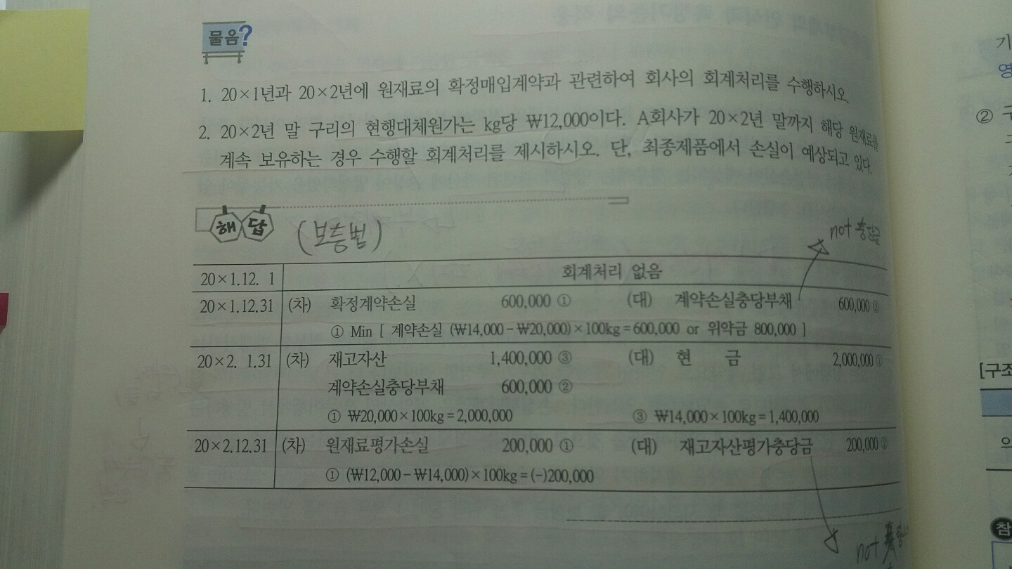2,000,000으로 분개하고서 나중에 원재료니까 현행원가로 평가손실을 측정하는거..아닌가요?? ㅠㅠㅠㅠㅠㅠ