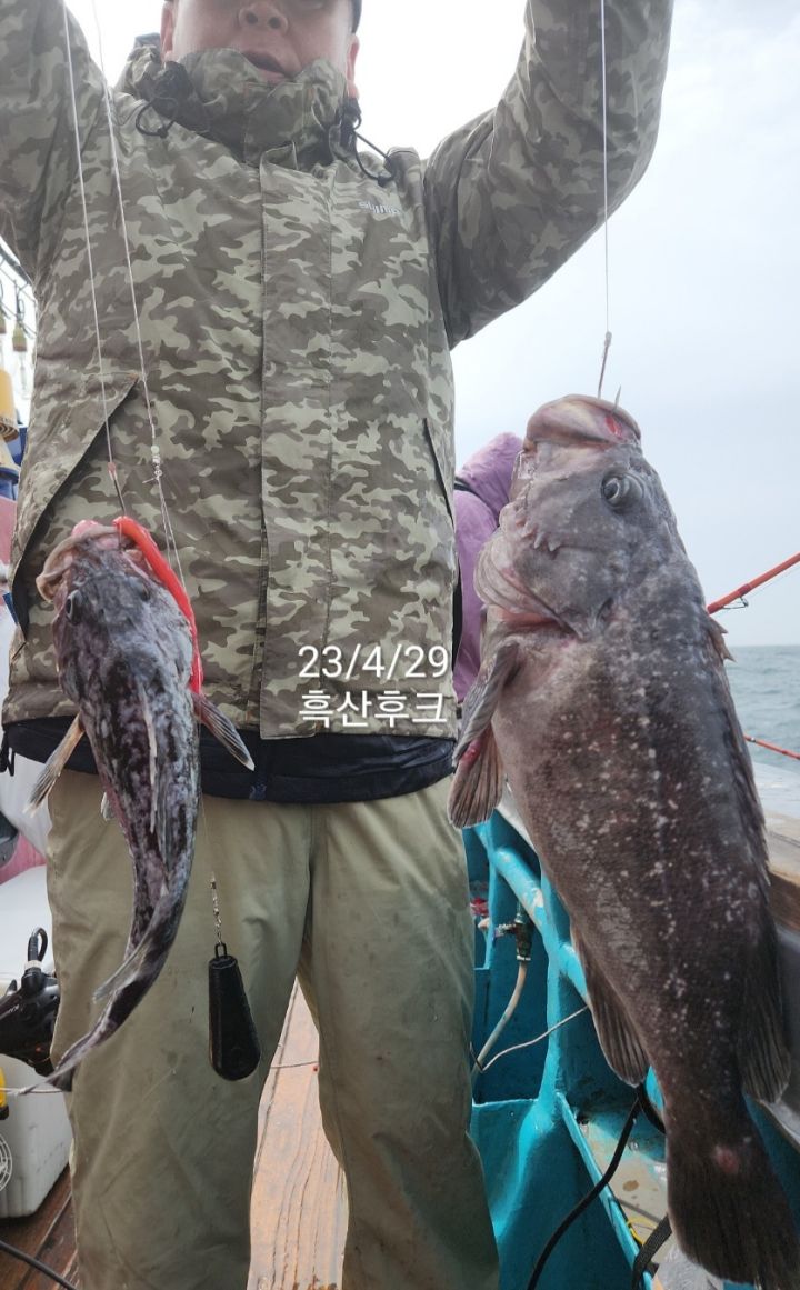 흑산후크호에서 4~5월 요즘같이 조황 어려운 시기에 역대급 인생고기 대왕열기가 사정없이 터져주고 있네요.