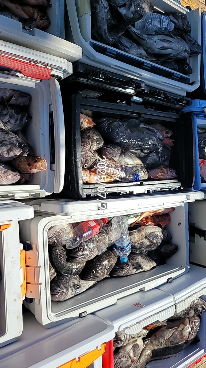 우럭당일 낚시영업출조는 기본 45리터미만 쿨러제한 출조 이지만, 쿨러가 차신분들 에게는 30리터 용량의 스티로폼박스를 배에서 요청즉시 무료로 지급해 드립니다.