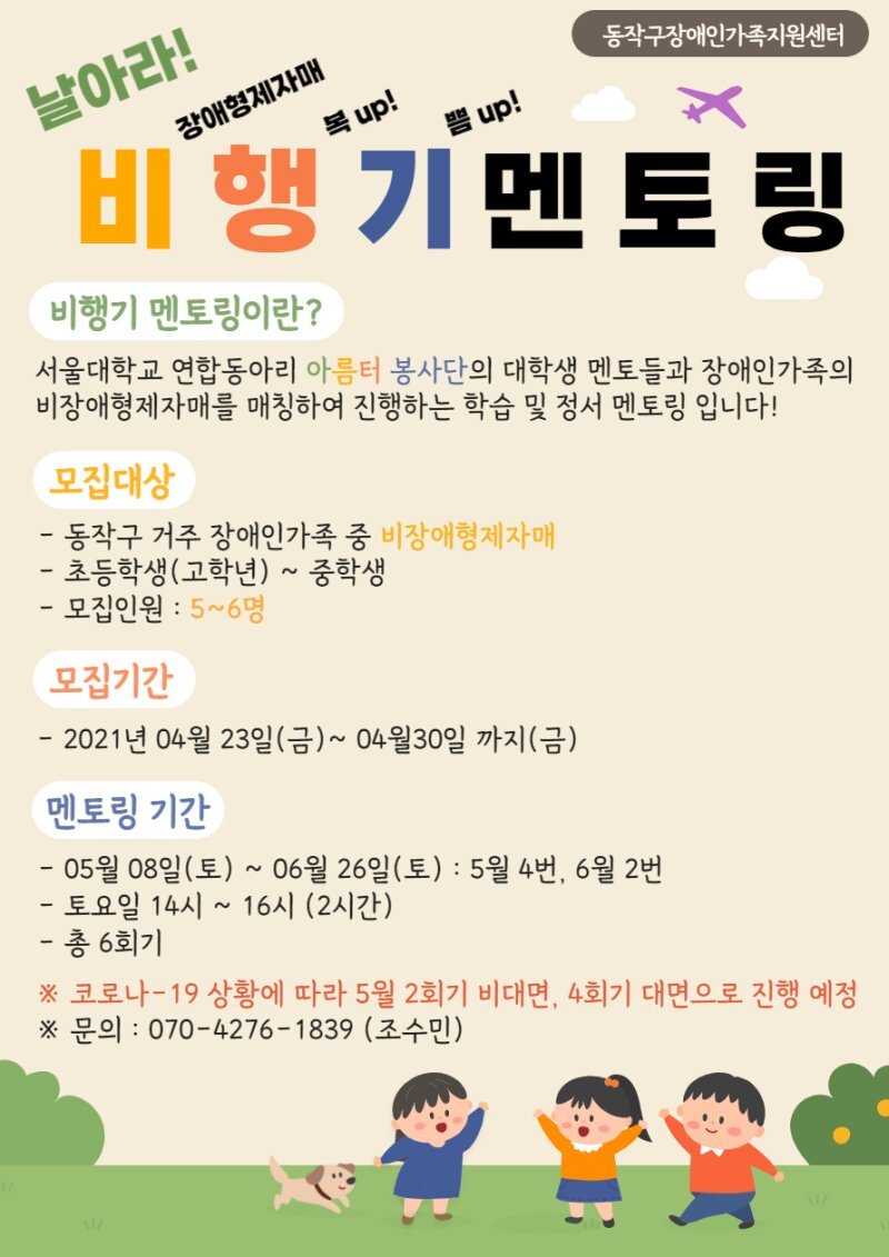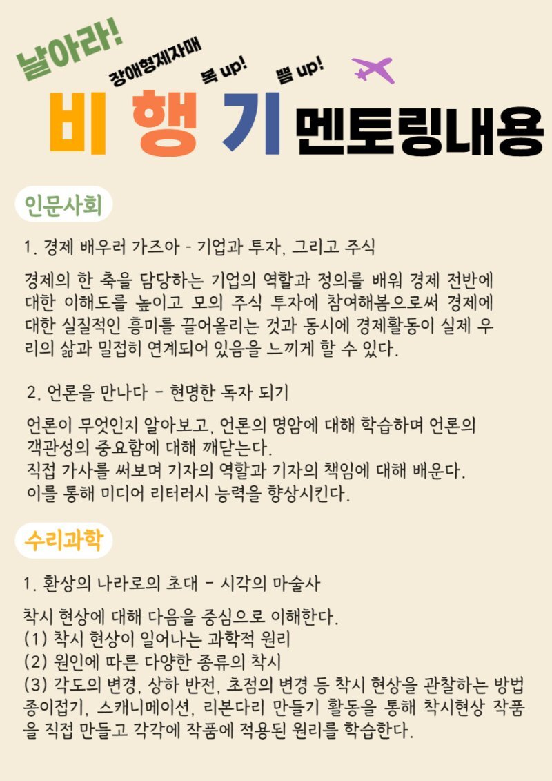 비장애형제자매 학습 및 정서 멘토링 <날아라! 비행기>