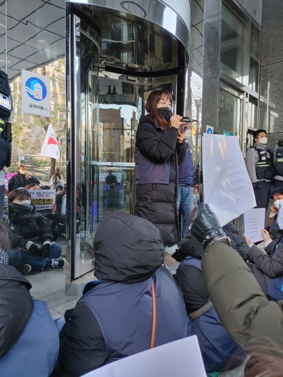추운 날씨에 등을 들썩일만큼 오들오들 떨어가며 재단 직원에게 면담요구서를 전달하기 위해 기다렸으나, 팩스로 보내면 될 것을 왜 나오라마라 하느냐는 핀잔까지 보태어 들어야만 했습니다.