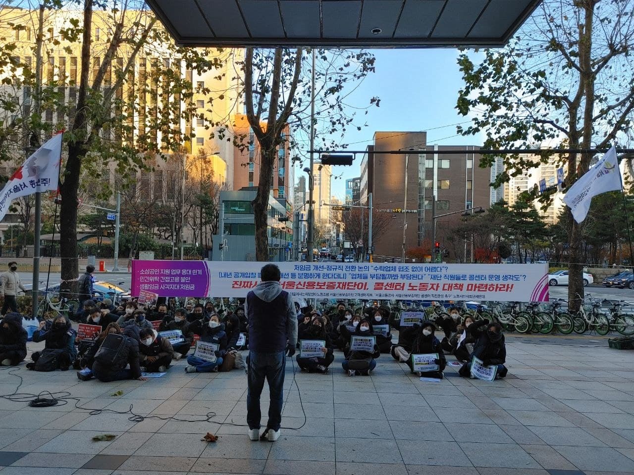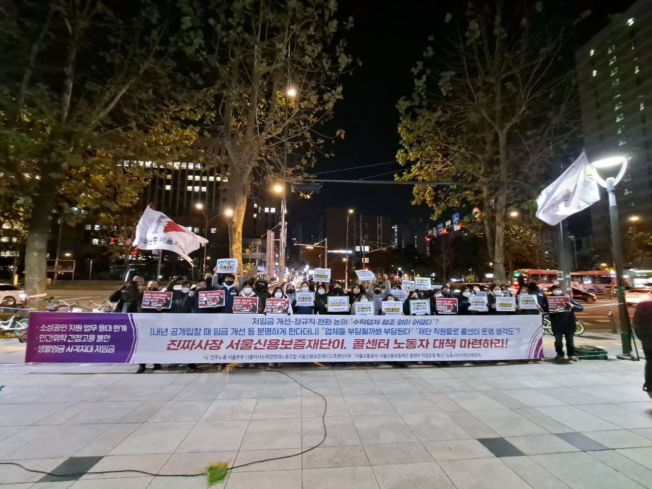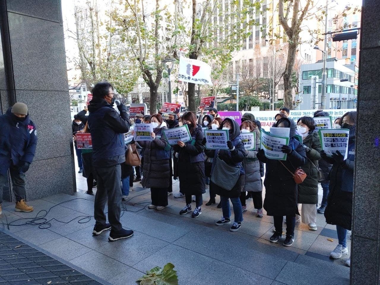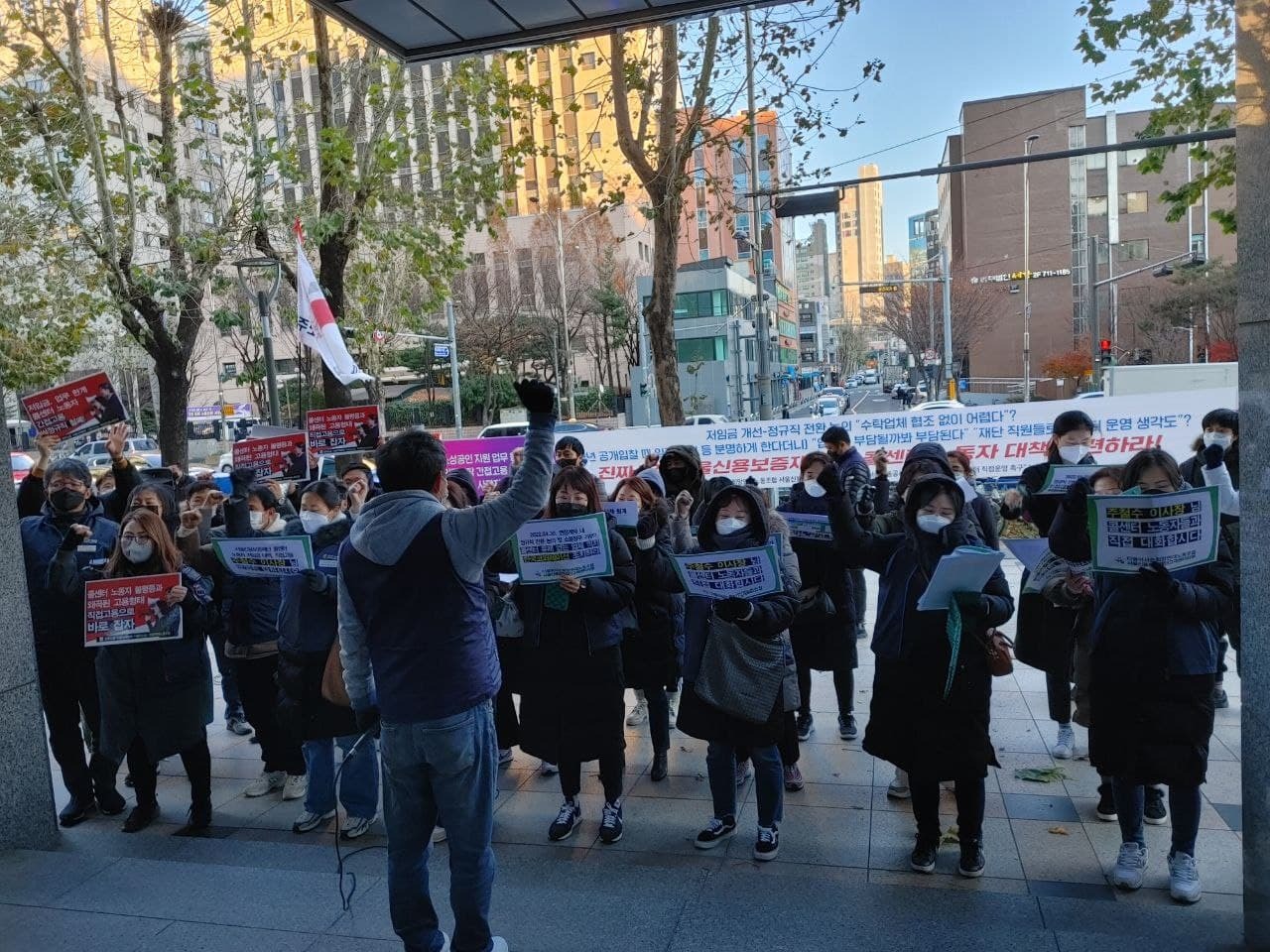 현재 12.10 서울시-재단-노조와의 후속면담이 약속되어 있습니다.우리 조합원들이 추운 날씨에도 불구하고 생활임금에도 한참 못미치는 월급에 차감을 감수하면서까지 이번주 월요일부터 어제 목요일까지 재단앞에서 저희의 저임금문제, 정규진전환문제 해결될수 있기를 목놓아 외쳤습니다.