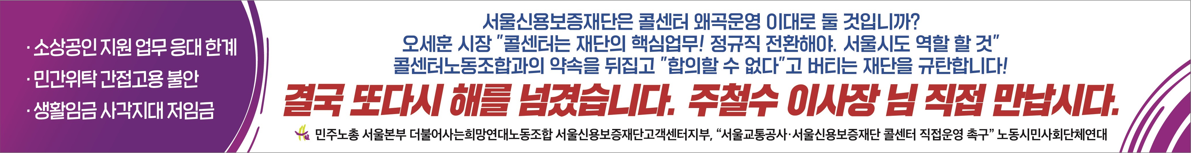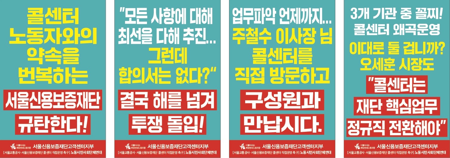 국민건강보험센터고객센터지부와 서울신용보증재단고객센터지부는 같은 투쟁을 하고 있다고 생각합니다. 서울신용보증재단고객센터지부가 승리하는 날까지 함께하겠습니다