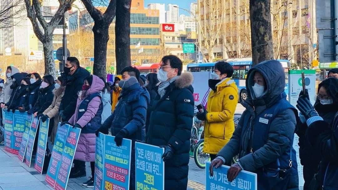 서울신용보증재단 고객센터(콜센터) 노동자들(민주노총 서울지역본부 더불어사는희망연대노동조합 서울신용보증재단고객센터지부)이 해를 넘겨서까지 투쟁을 불사한다고 밝힌 데 이어 오늘 2022년 1월 13일(목) 오후 2시 30분부터 재단 앞에서 경고파업 집회를 진행했습니다.