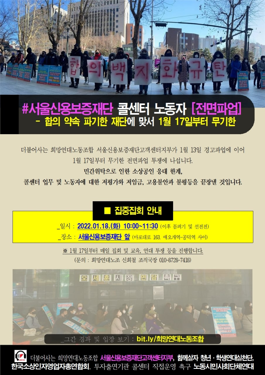 ㅇ 2022.01.14. 서울신용보증재단고객센터지부 전면파업 투쟁 웹자보 :