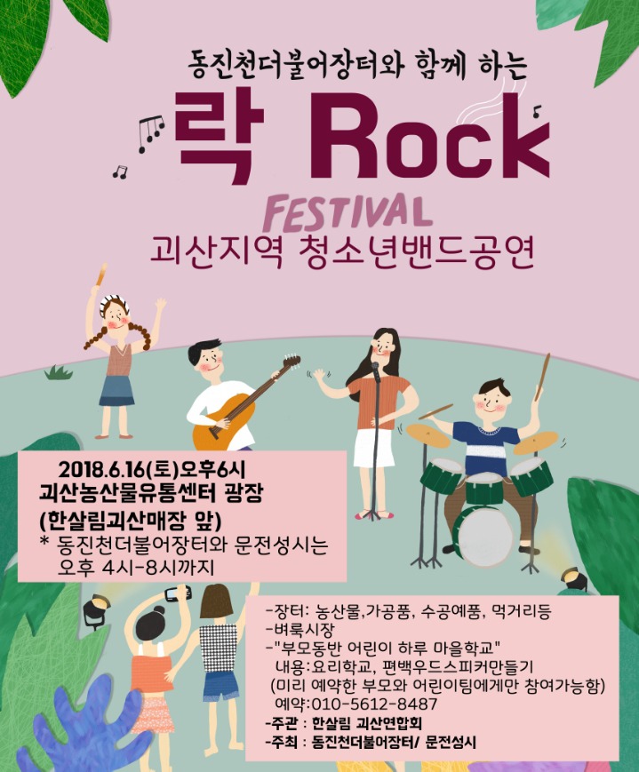 6월은 괴산지역 고등학생. 대학생들 네팀이 락페스티벌에 참여합니다.