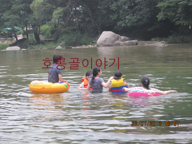 강폭이 넓어 수영하고, 미끄럼타고 여름물놀이로는 최고다