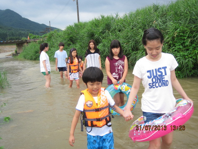 비가 온 뒤라 강물이 많았고, 물속은추웠으나 아이들은 잘도 논다. ㄱ래서 아이들인가 보다.
