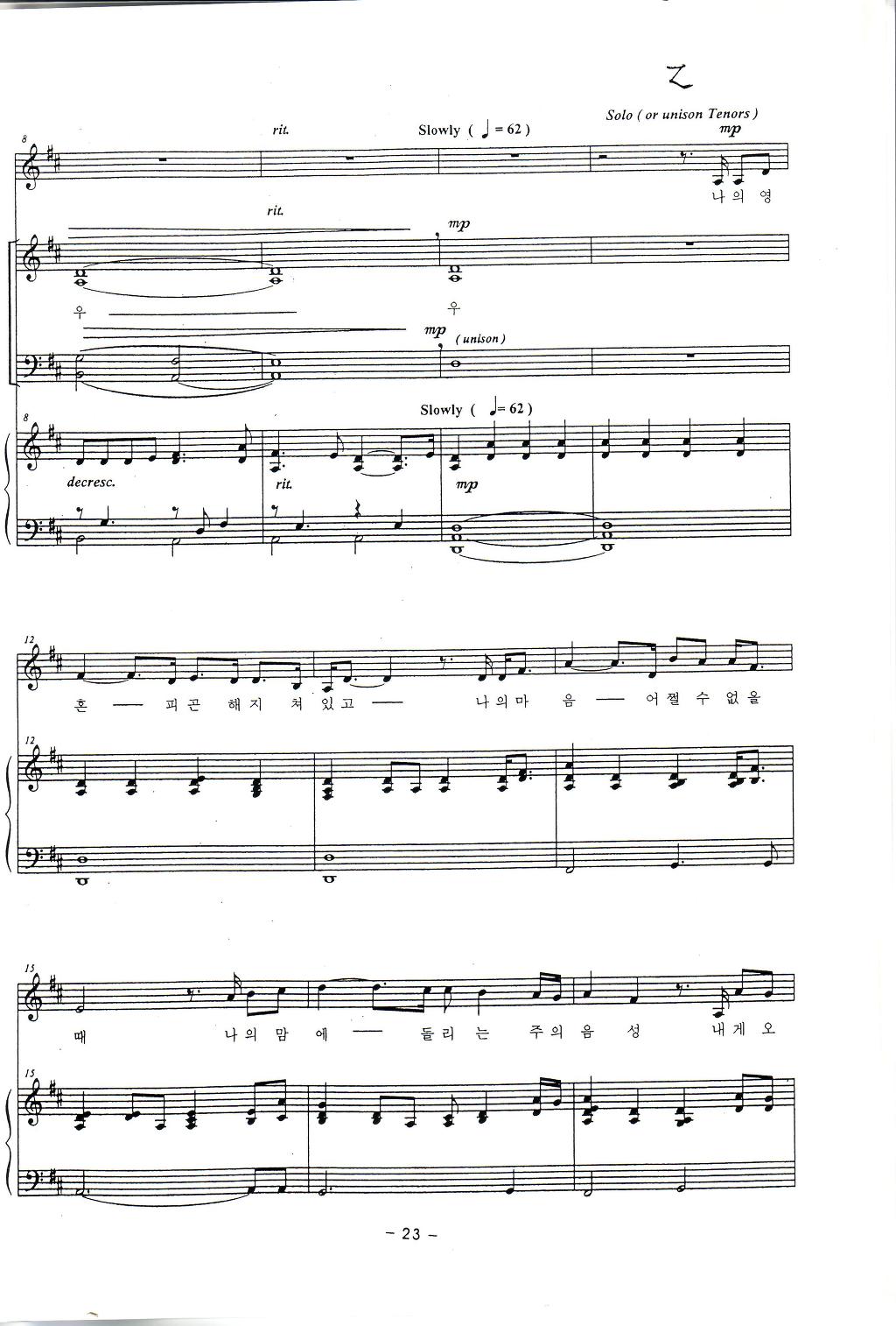 You raise me up(주가 나를 일으키니네)-합창악보(한글) 작성자Mario 최성후(지휘자)|작성시간11.02.09|조회수1,992 목록 댓글 0 글자크기 작게가 글자크기 크게가 다음검색 현재 게시글 추가 기능 열기 북마크 공유하기 신고 센터로 신고 댓글 댓글 0 댓글쓰기 답글쓰기 댓글 리스트