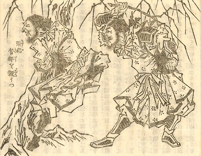 술취한 장비 케릭터를 희화화하여 그린 일본의 목판화