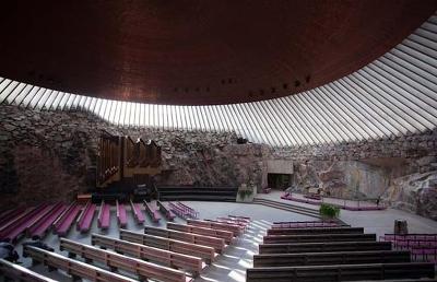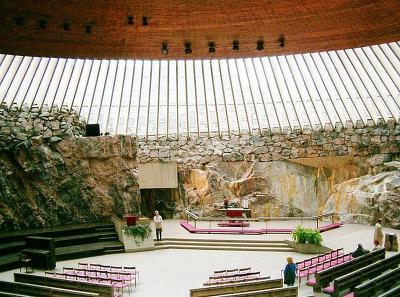 바위 교회’(Temppeliaukio Church) 는1969년 큰 빌딩보다도 더 큰 바위속에 다이나마이트를 넣어 폭파시킨후