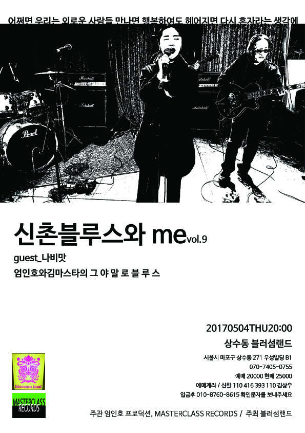 이번엔 대한민국 블루스의 산 증인이자 전설인 '신촌블루스'의 '신촌블루스와 me-vol.9' 공연 소식으로 여러분을 모십니다.