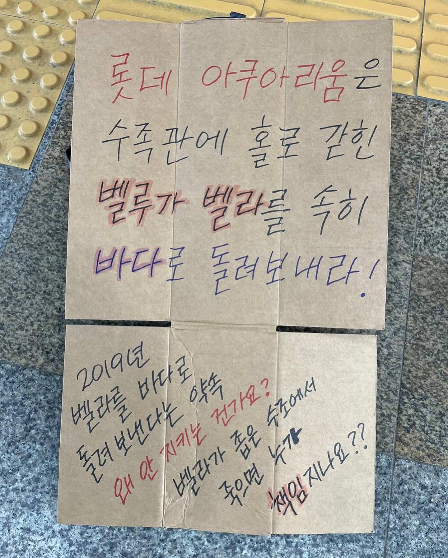 ❝롯데는 벨루가 전시 중단하고 방류 약속 이행하라!❞