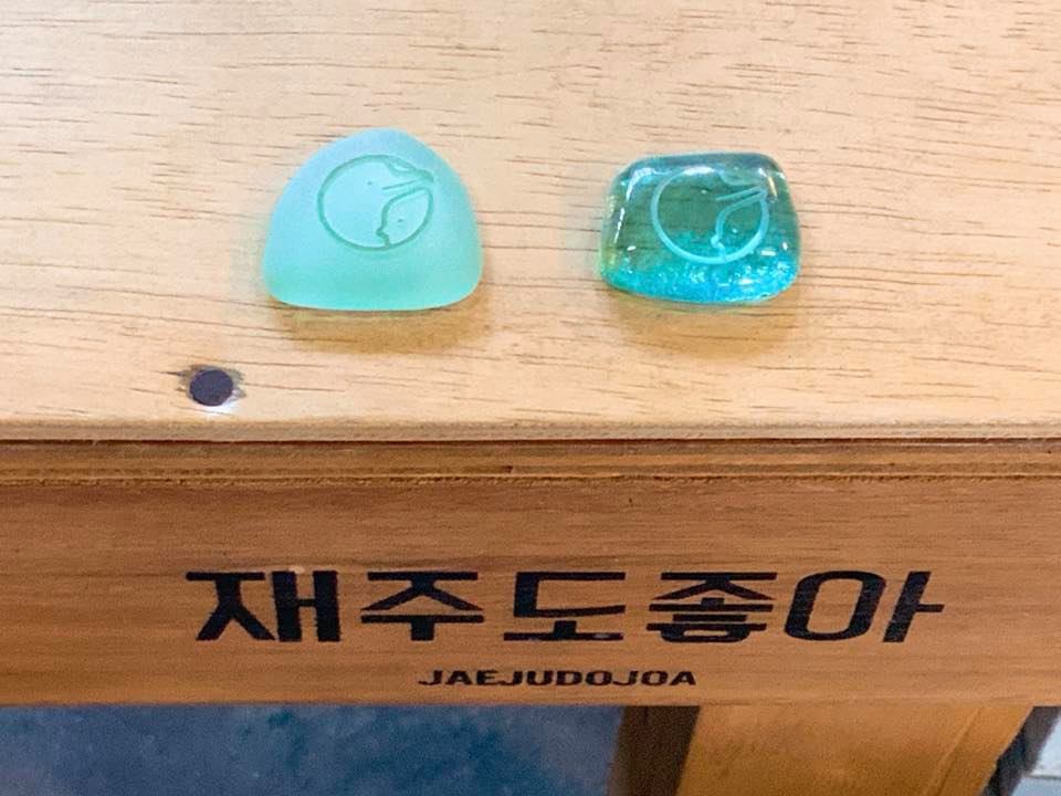 그래서 핫핑크돌핀스는 6월 23일 끊임없이 밀려와 쌓여가는 바다쓰레기 문제를 예술로 해결하고자 노력하는 재주도좋아 친구들에게 자문을 구하러 지구상회에 다녀왔어요. 재주도좋아 친구들은 세이브제주의 캠페인 등 좋은 사례들을 소개해주고, 바다처럼 말간 유리조각에 핫핑크돌핀스 로고도 쓱쓱쓱 새겨 선물해주었어요.🎀 같은 고민을 하고 함께 방법을 모색할 친구들이 존재한다는 것만으로도 큰 위안이 되는 시간이었답니다.😌🙏🏻✨