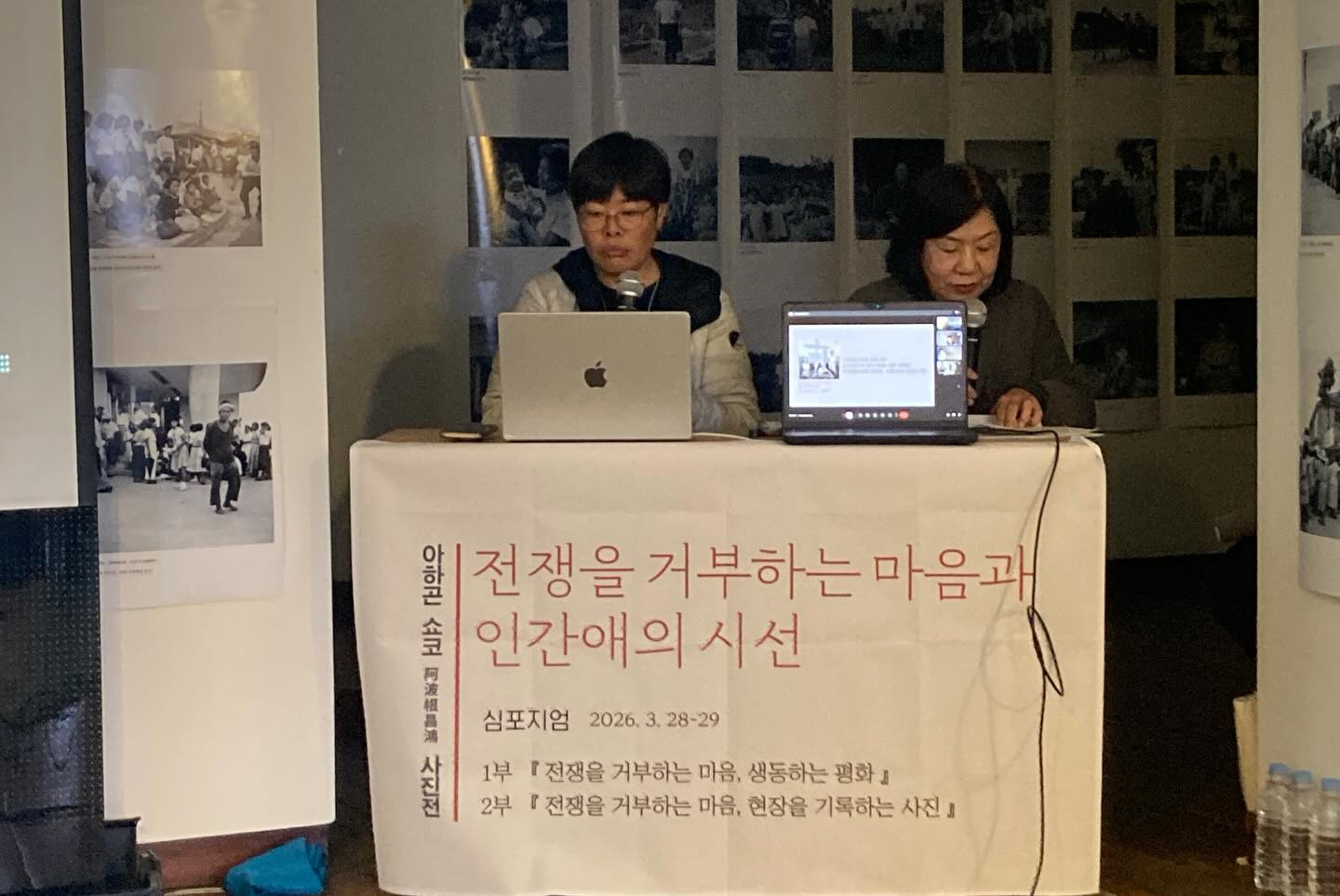 지난 3/28(토)-3/29(일)에 핫핑크돌핀스 활동가들은 군산평화박물관이 주관한 아하곤 쇼코(阿波根昌鴻, 1901-2002) 사진전 ”전쟁을 거부하는 마음과 인간애의 시선“에 다녀왔습니다. 오키나와 순회 후 첫 해외전시라 그런지 오키나와 현지 평화운동가, 사진가 분들도 오시고 많은 관람객이 방문했습니다.
