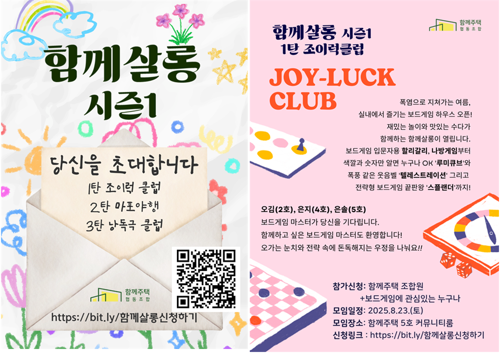 함께살롱 1탄은 보드게임으로 만나는 [조이럭 클럽], 8월 23일(토), 2시~4시