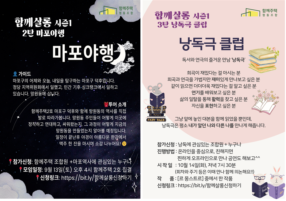 함께살롱 2탄은 함께주택이 많이 모여있는 마포지역을 마포구 덕후와 떠나는 망원야행, [마포야행] , 9월 13일(토), 4시
