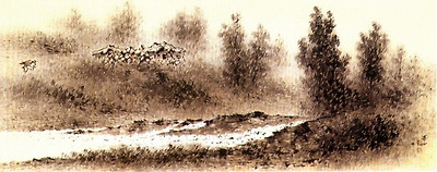 모추 1965 년작 종이에 수묵 담채 60 x 178 cm 개인소장
