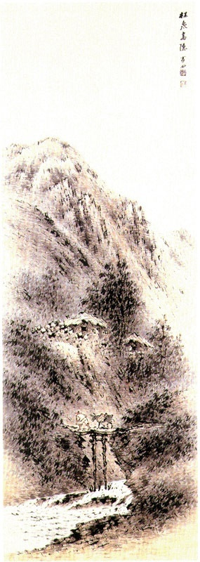 [산로정취] 1960년대 종이에 수묵담채 128*45cm