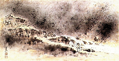 [산가(山家)] 1950년대, 종이에 수묵담채, 24*48㎝