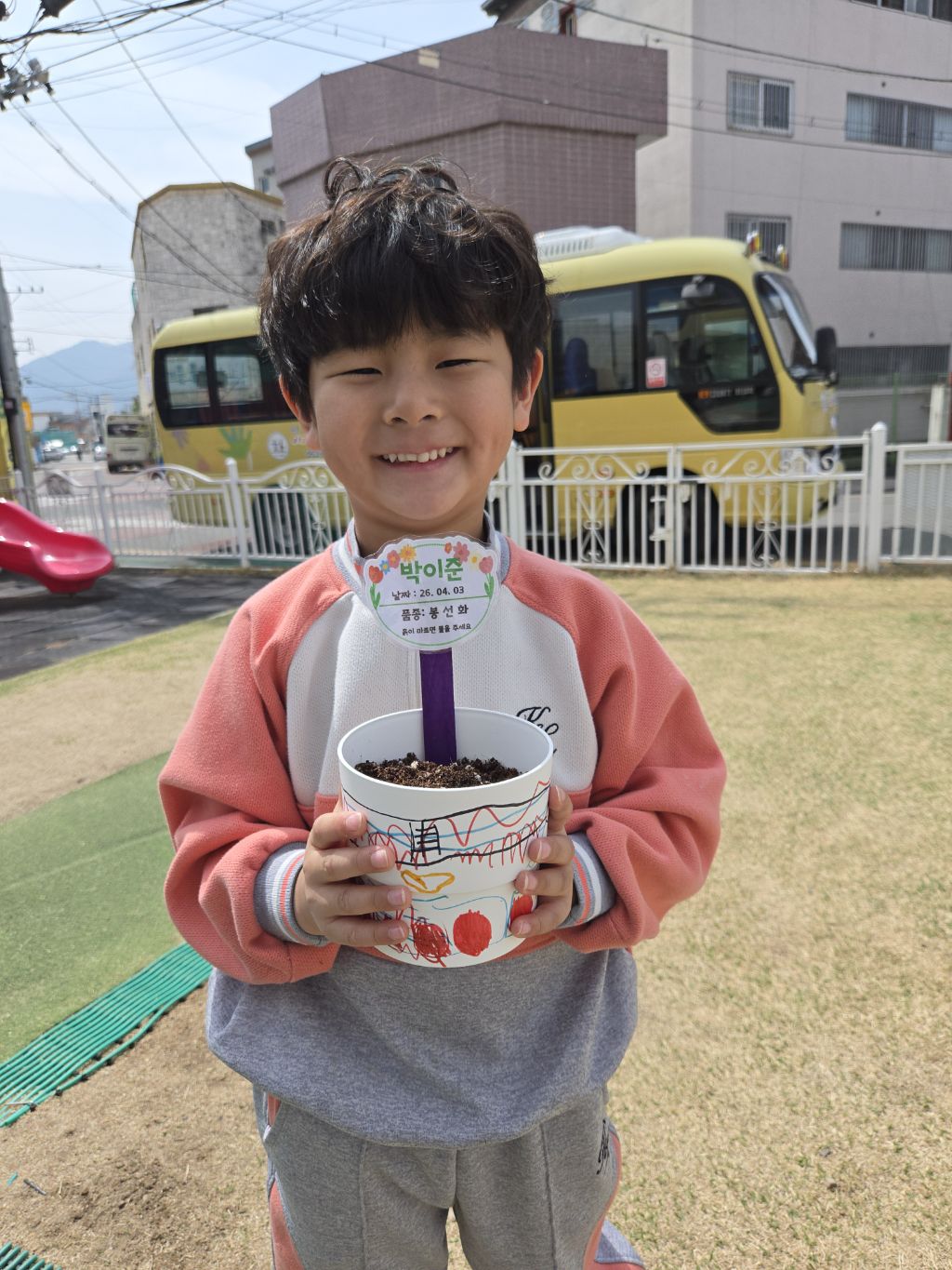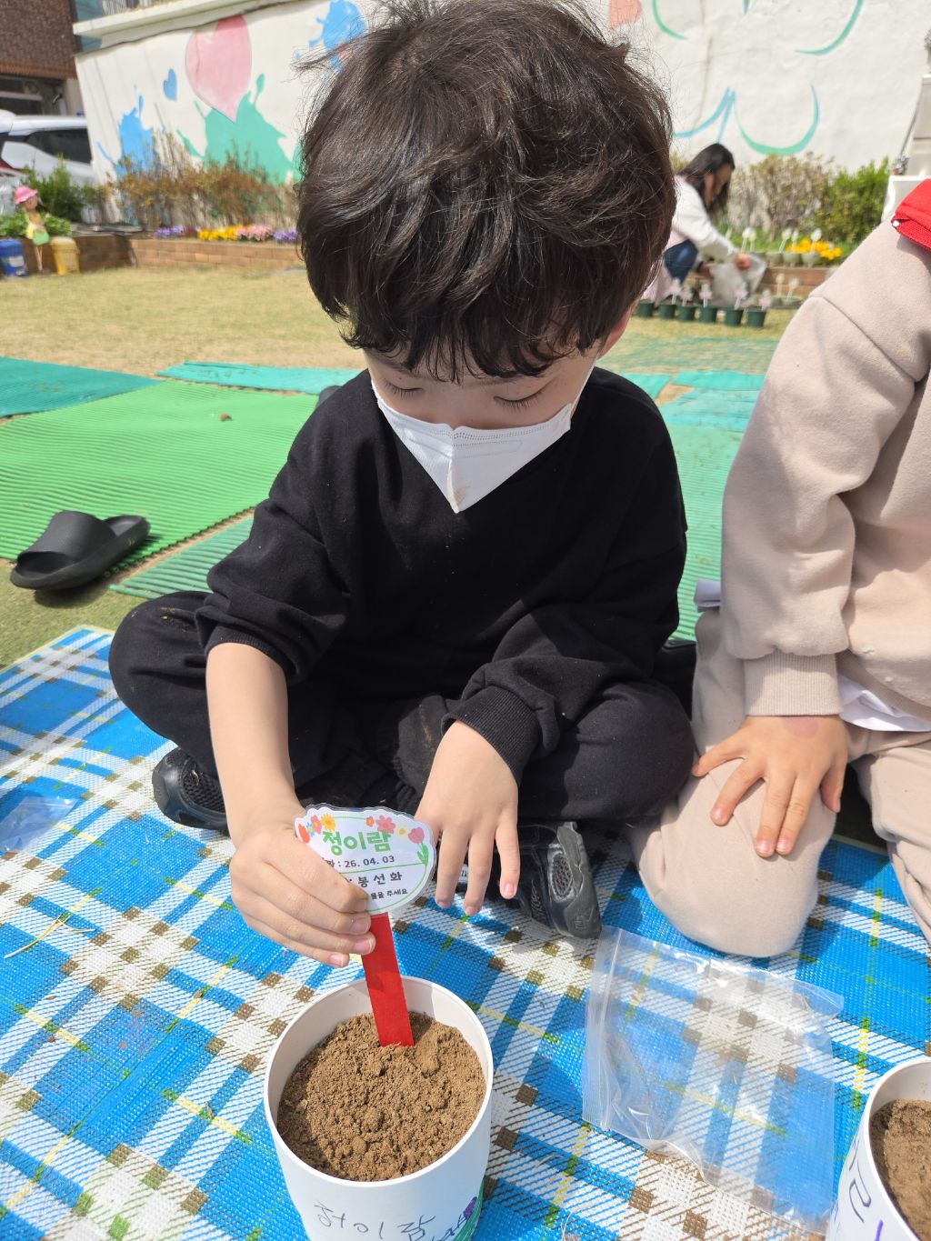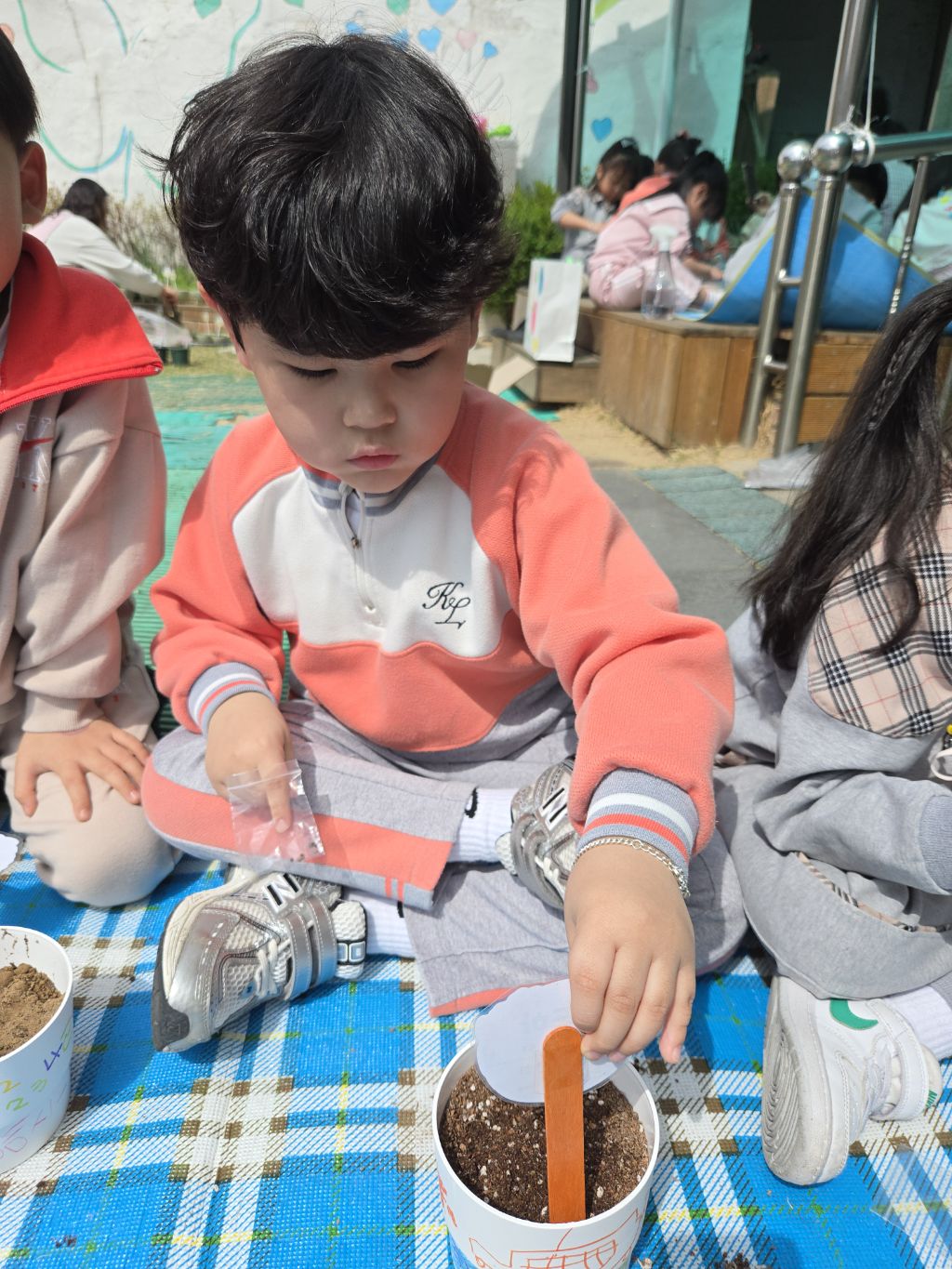 작은 손으로 흙을 조심스럽게 만지며 봉선화 씨를 심어보고, 물도 정성껏 주며 생명을 돌보는 경험을 해보았답니다. “빨리 자라라~” 하며 사랑을 담아 이야기하는 친구들의 모습이 참 사랑스러웠습니다😊