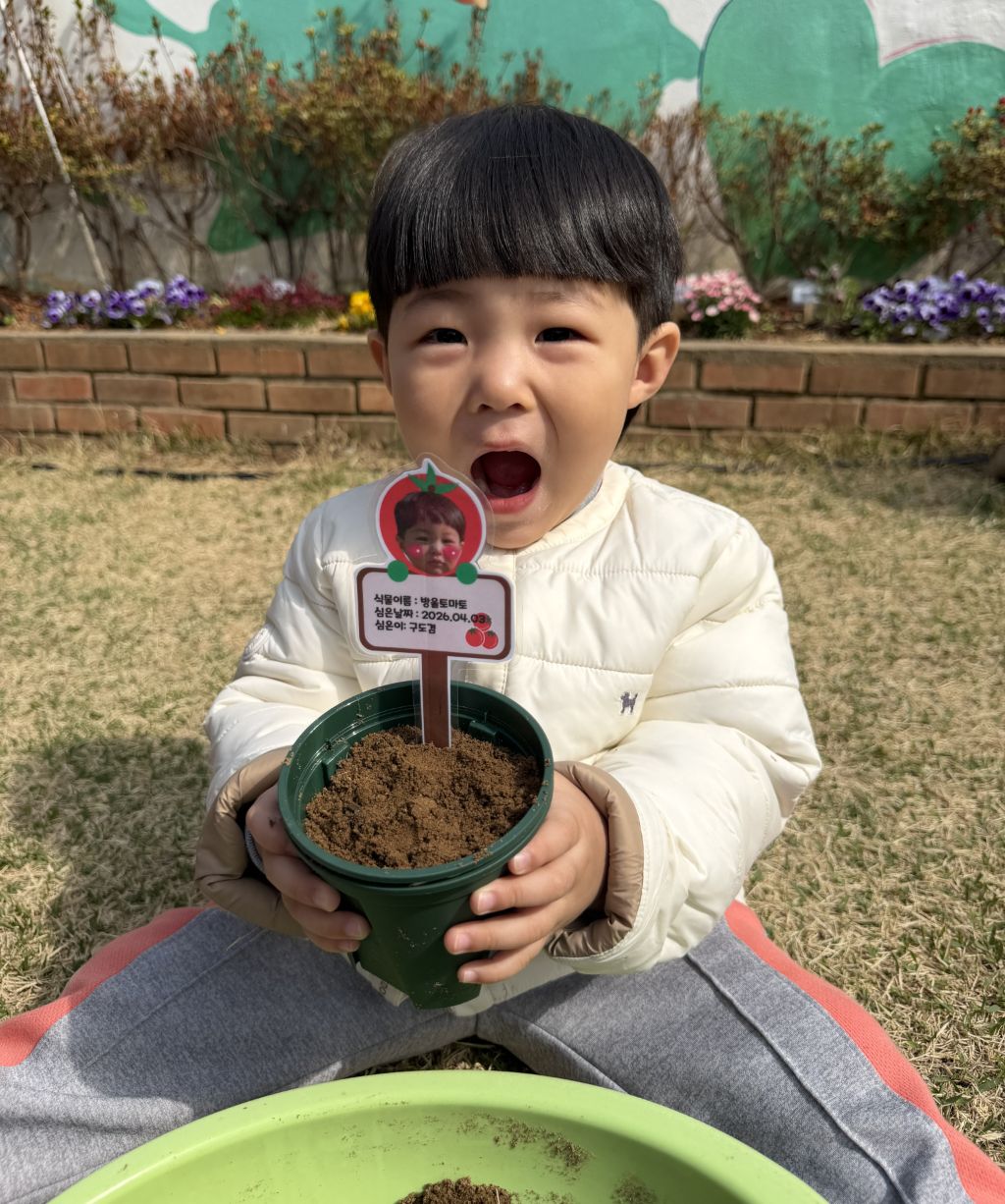 따뜻한 봄 날씨 속에서 나비반 친구들과 함께 방울토마토 씨앗을 심어보는 활동을 해보았어요.