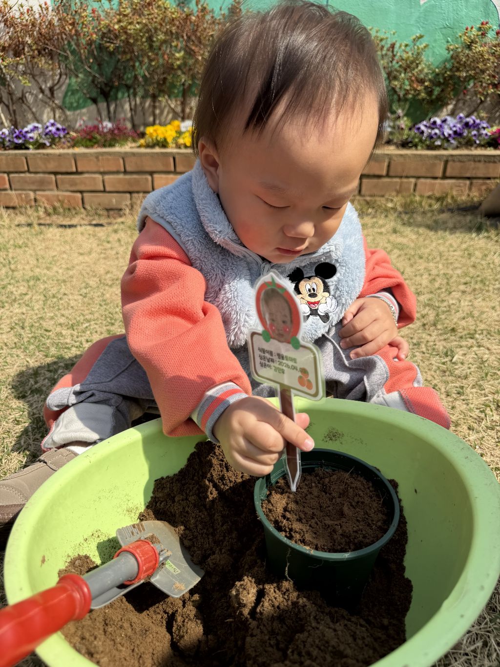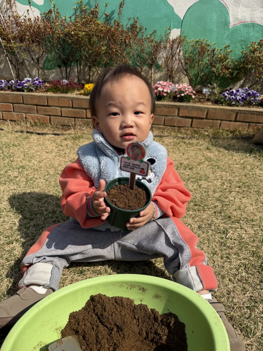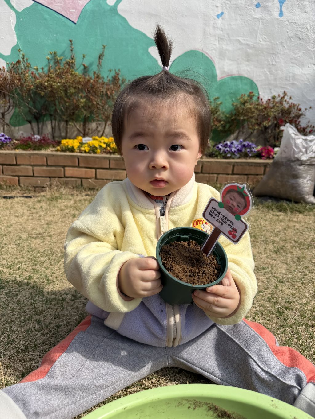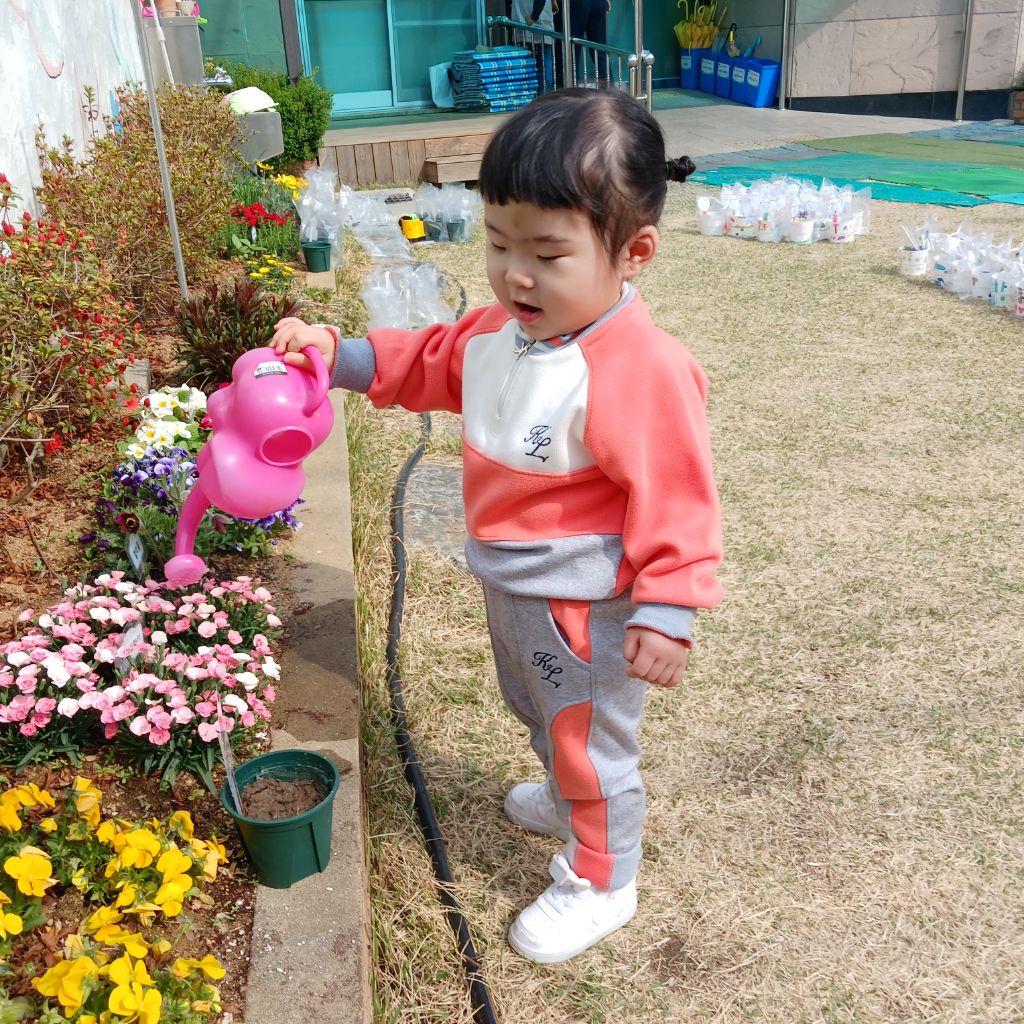 물뿌리개로 물을 주며 “쑥쑥 자라라” 이야기를 나누어 보았고, 씨앗이 자라나는 과정을 기대하는 표정도 보였어요~~🎶🎵