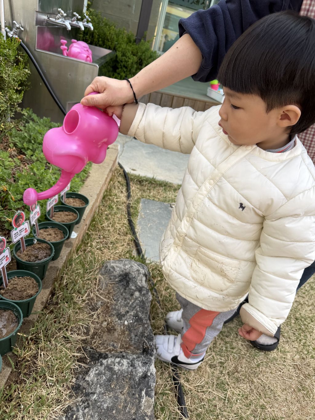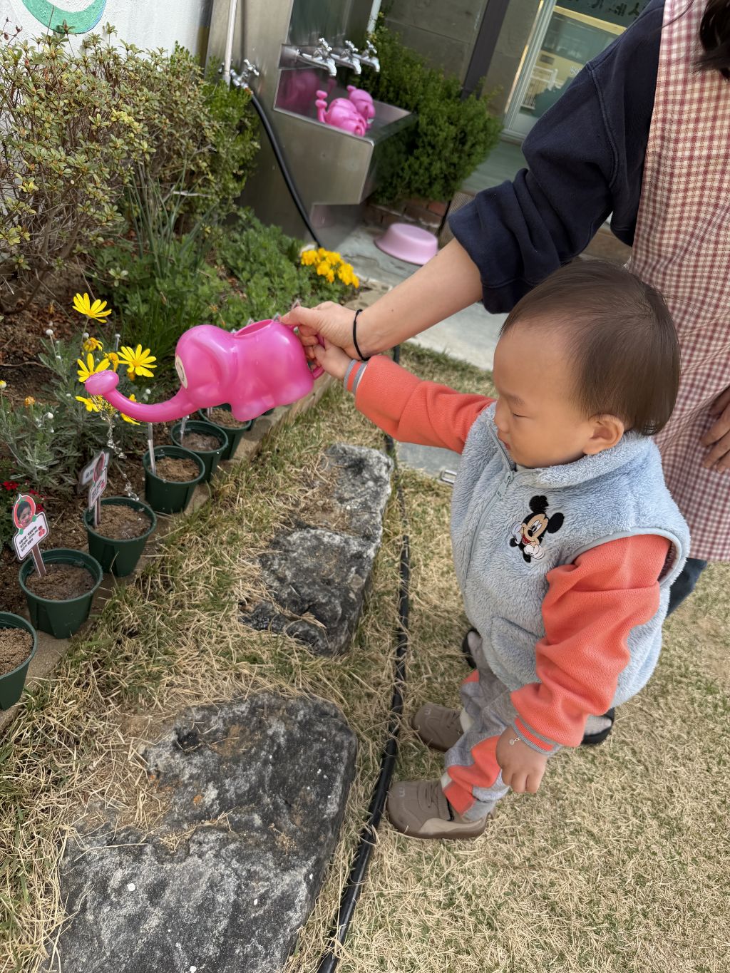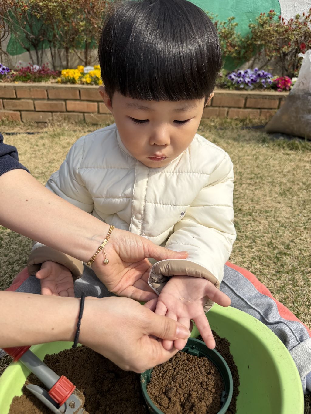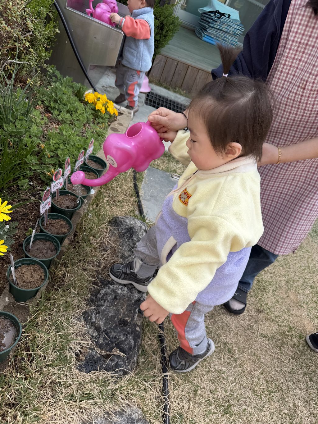 물뿌리개로 물을 주며 “쑥쑥 자라라” 이야기를 나누어 보았고, 씨앗이 자라나는 과정을 기대하는 표정도 보였어요~~🎶🎵