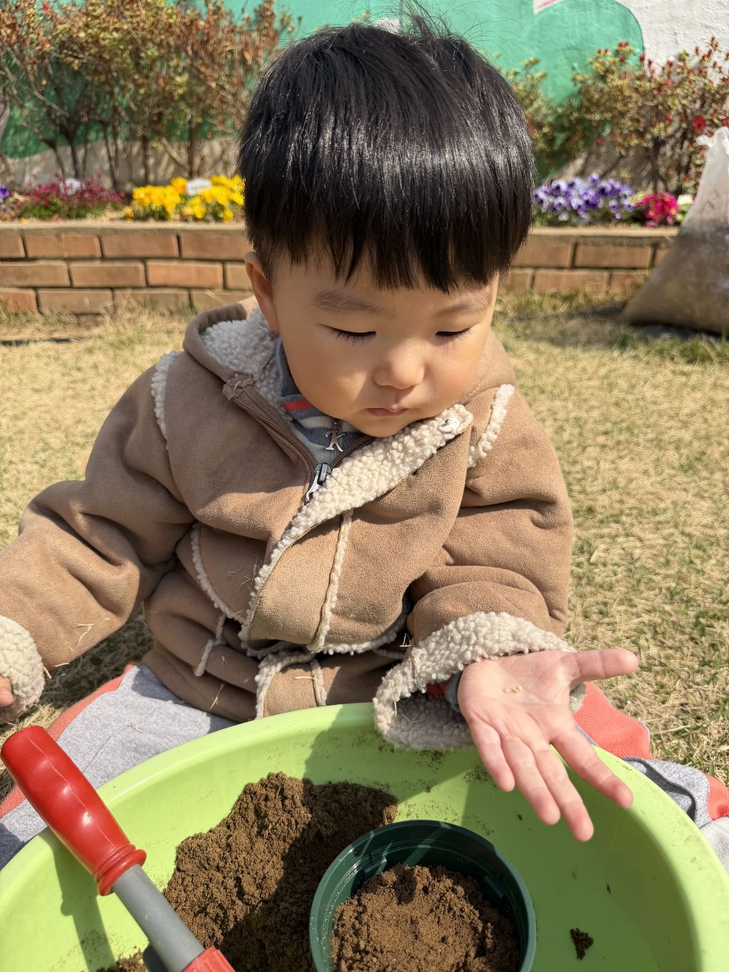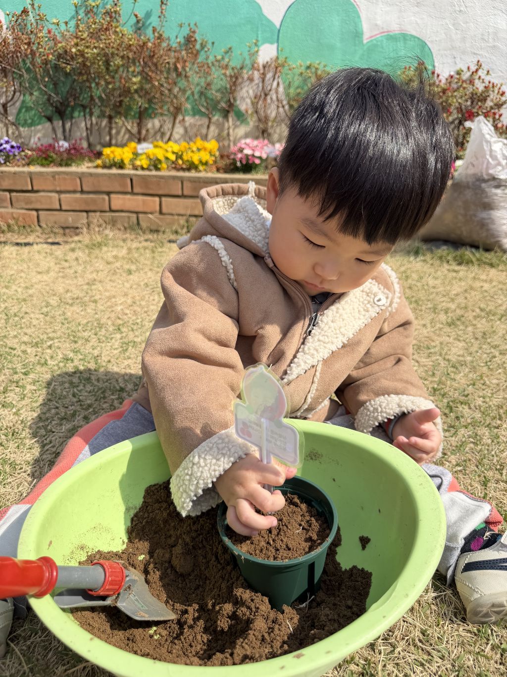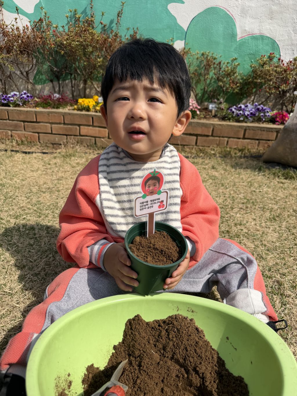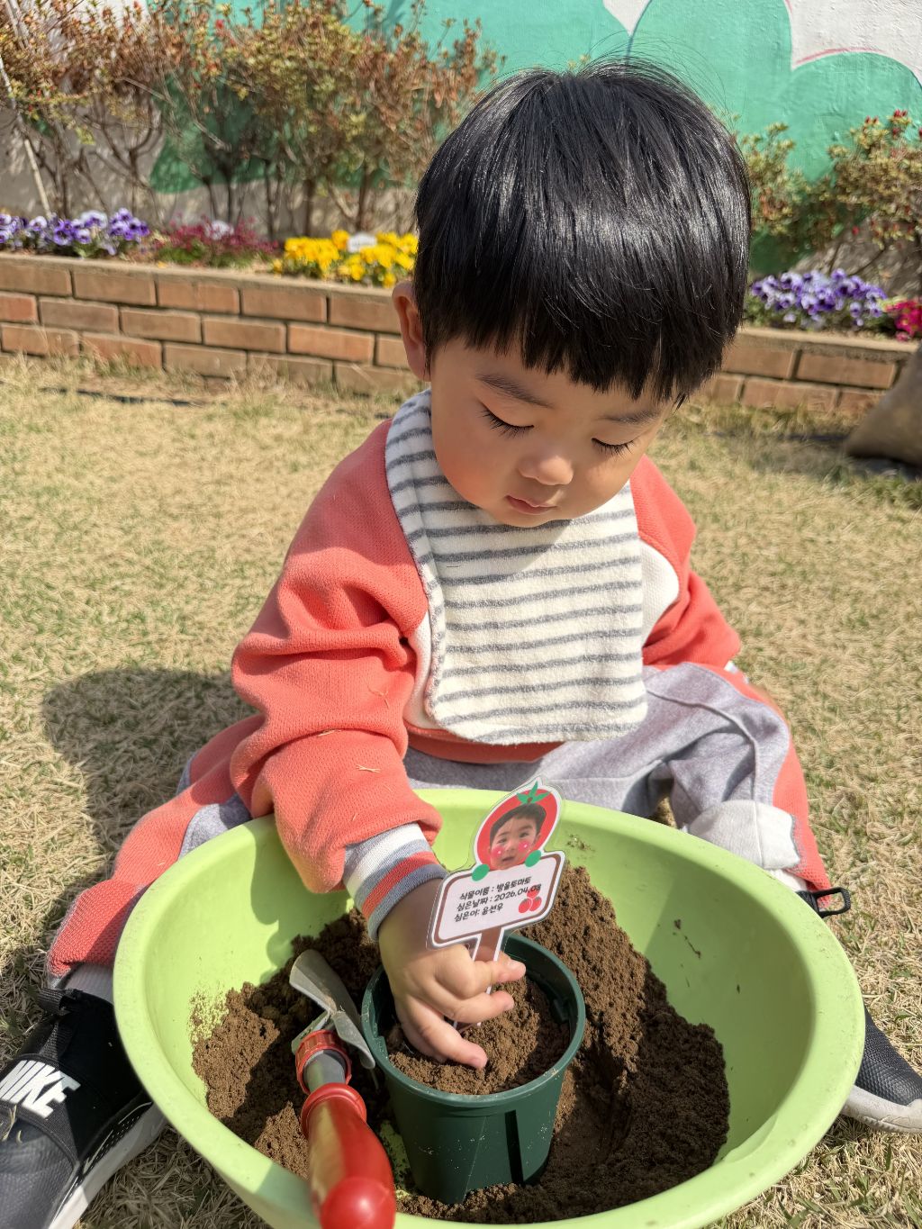 씨앗을 심은 뒤에는 흙을 살짝 덮어주며 “잘 자라라” 하고 표현해보는 모습도 보였습니다.