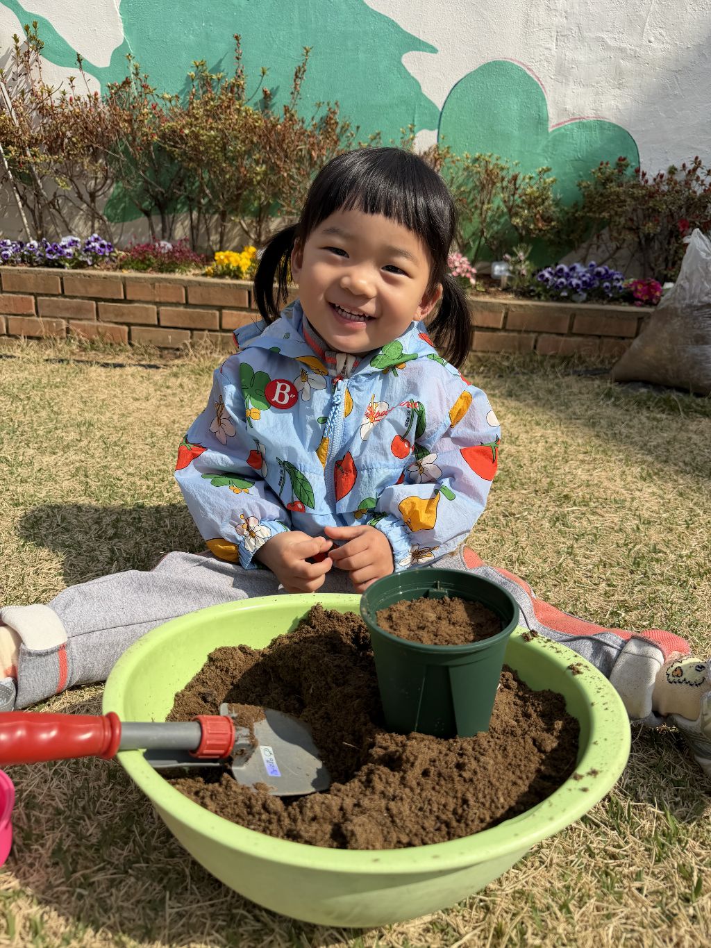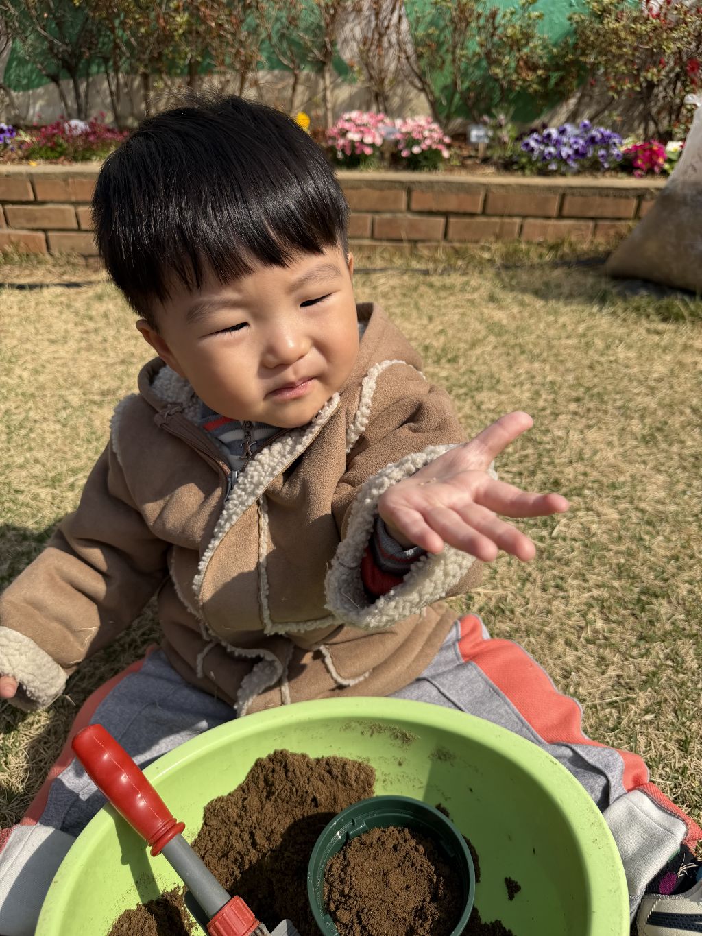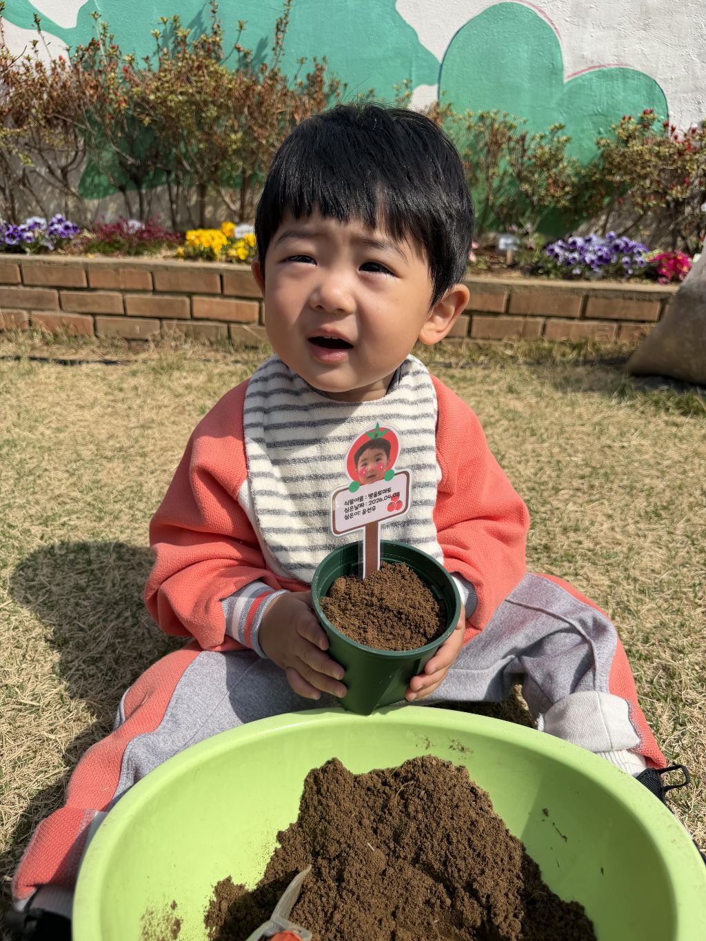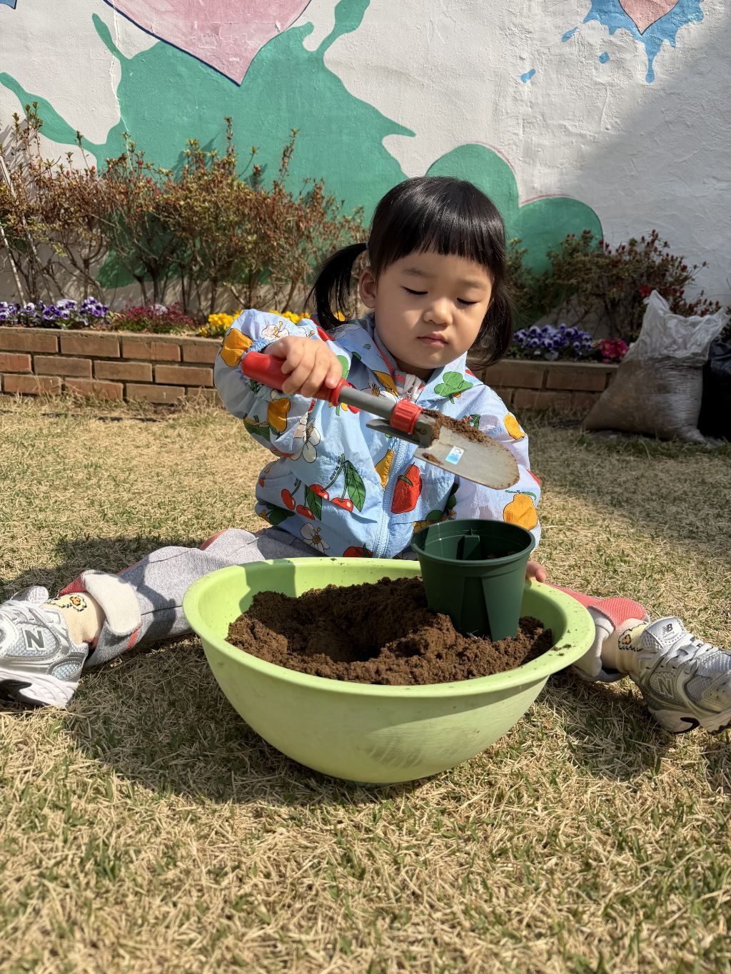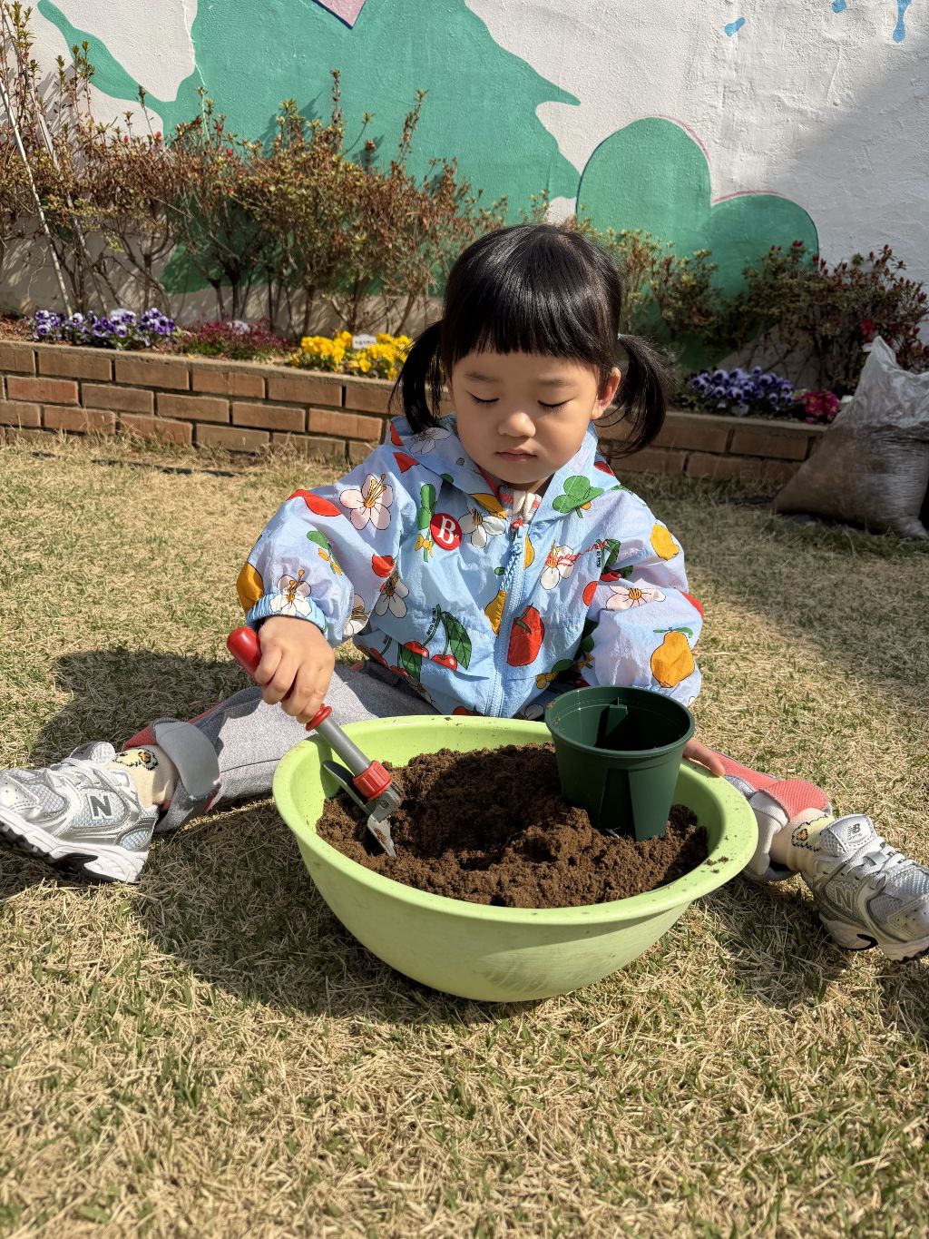 씨앗을 심은 뒤에는 흙을 살짝 덮어주며 “잘 자라라” 하고 표현해보는 모습도 보였습니다.