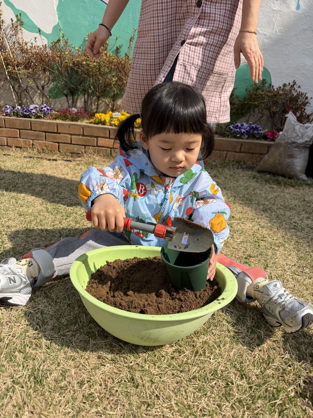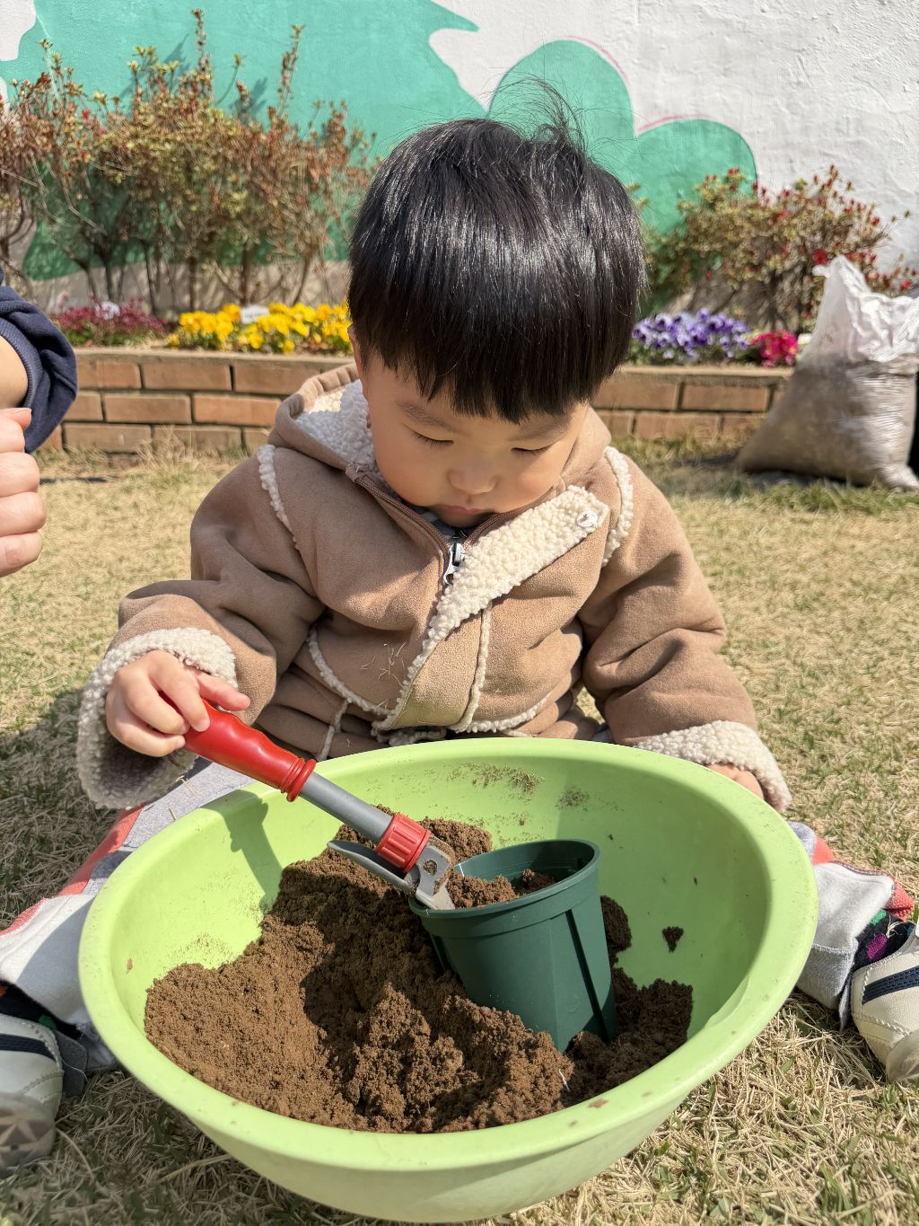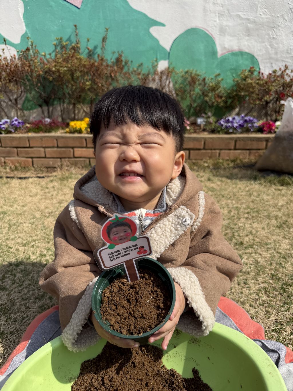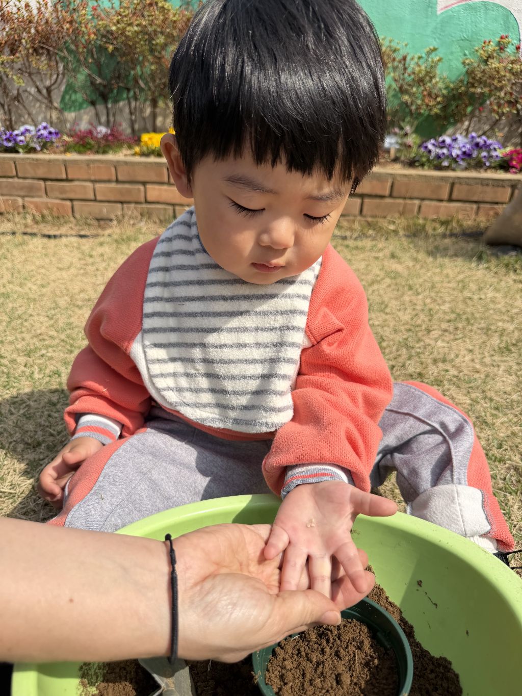 씨앗을 심은 뒤에는 흙을 살짝 덮어주며 “잘 자라라” 하고 표현해보는 모습도 보였습니다.