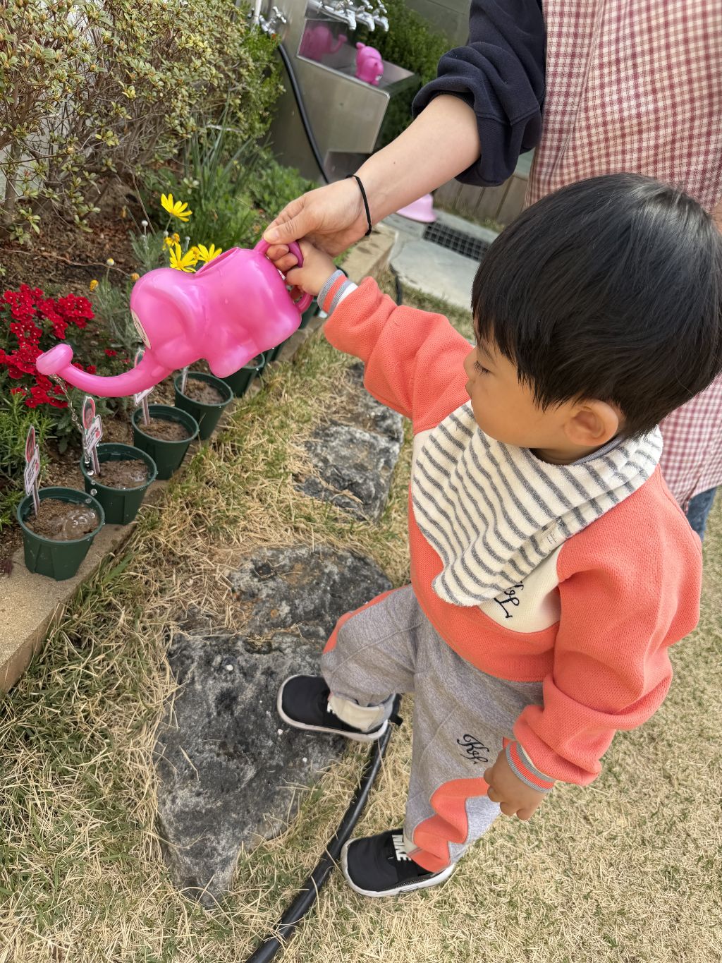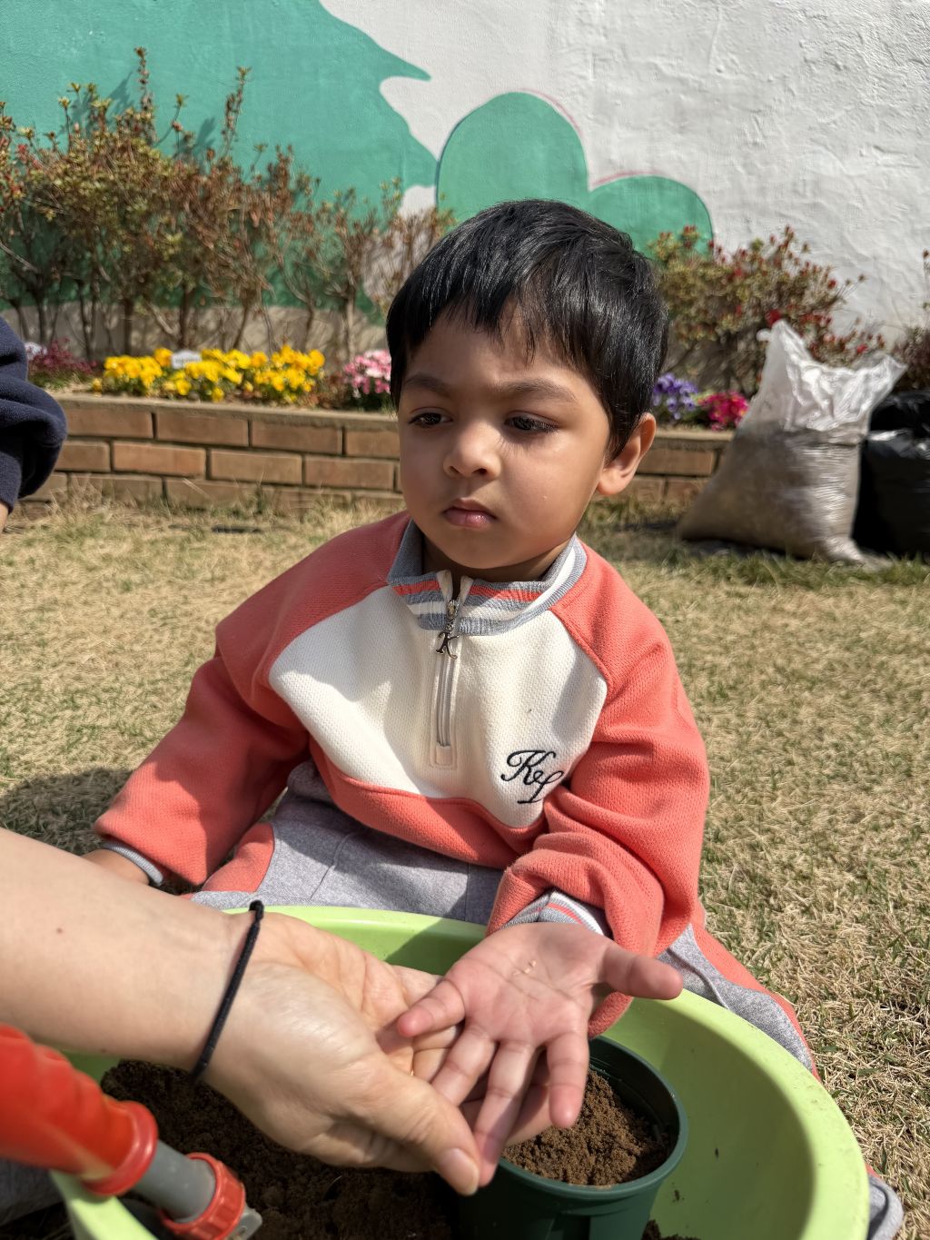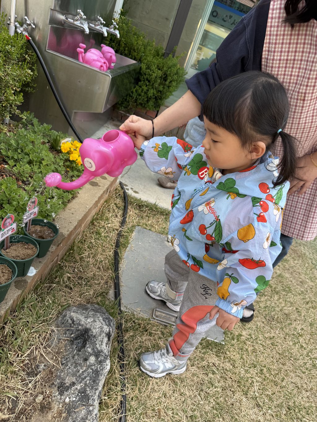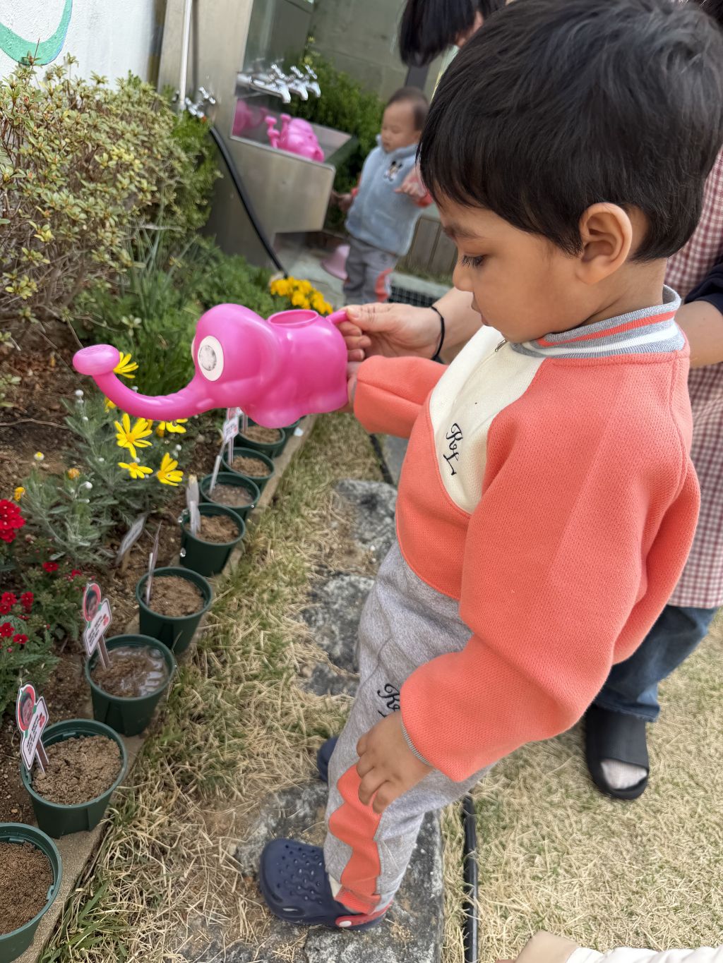 씨앗을 심은 뒤에는 흙을 살짝 덮어주며 “잘 자라라” 하고 표현해보는 모습도 보였습니다.