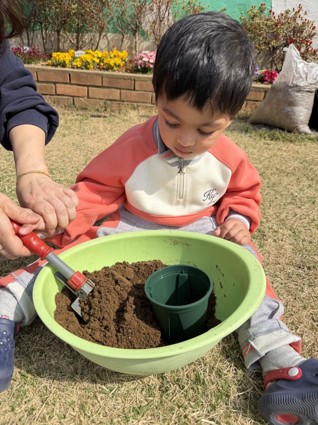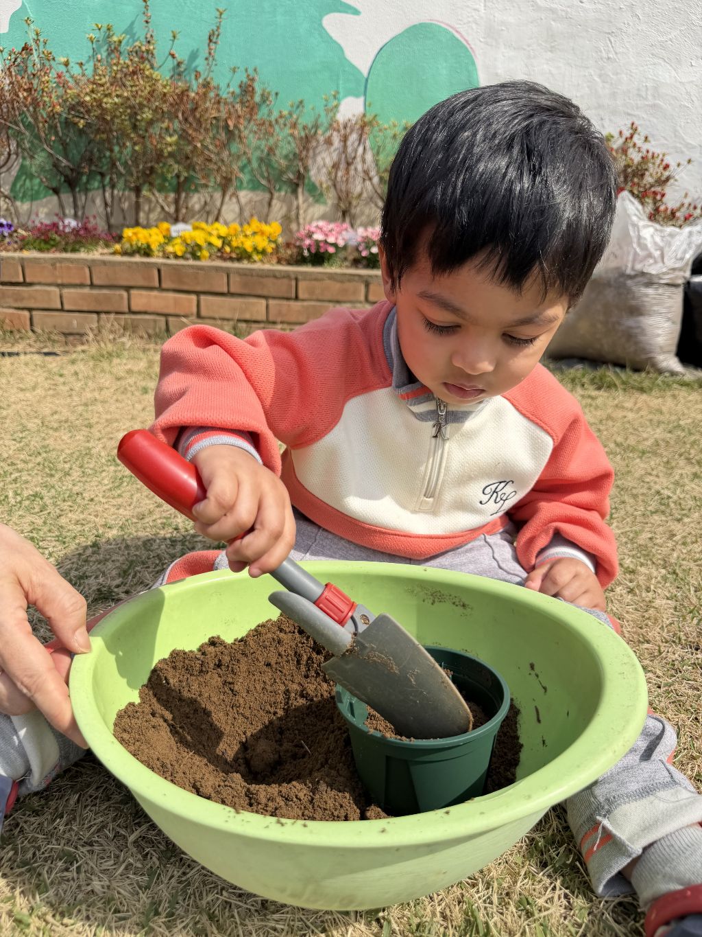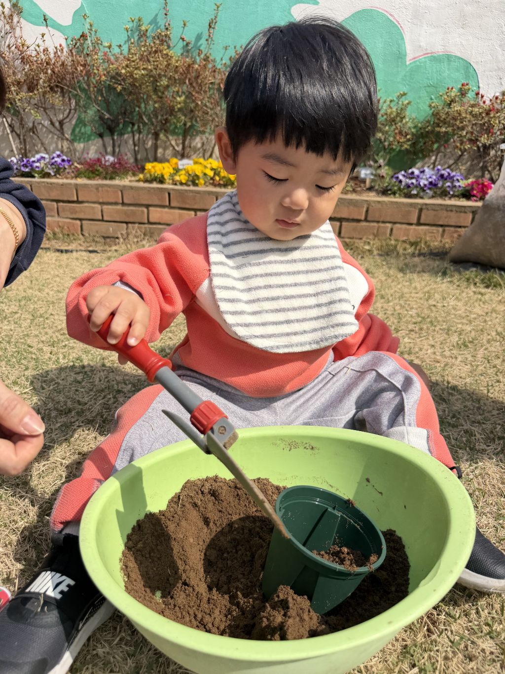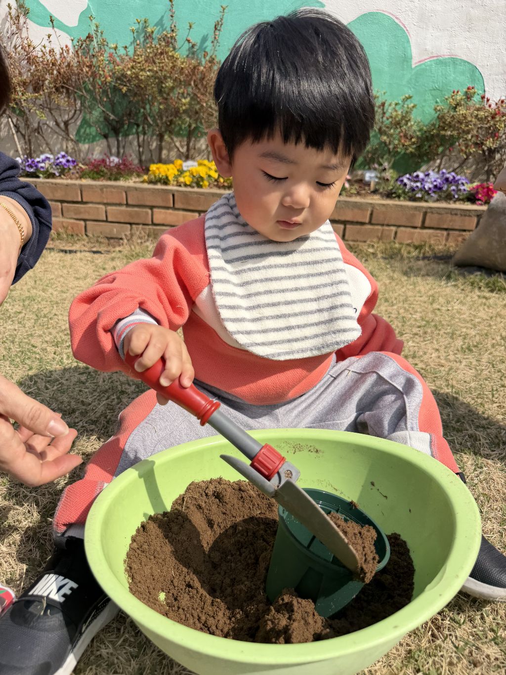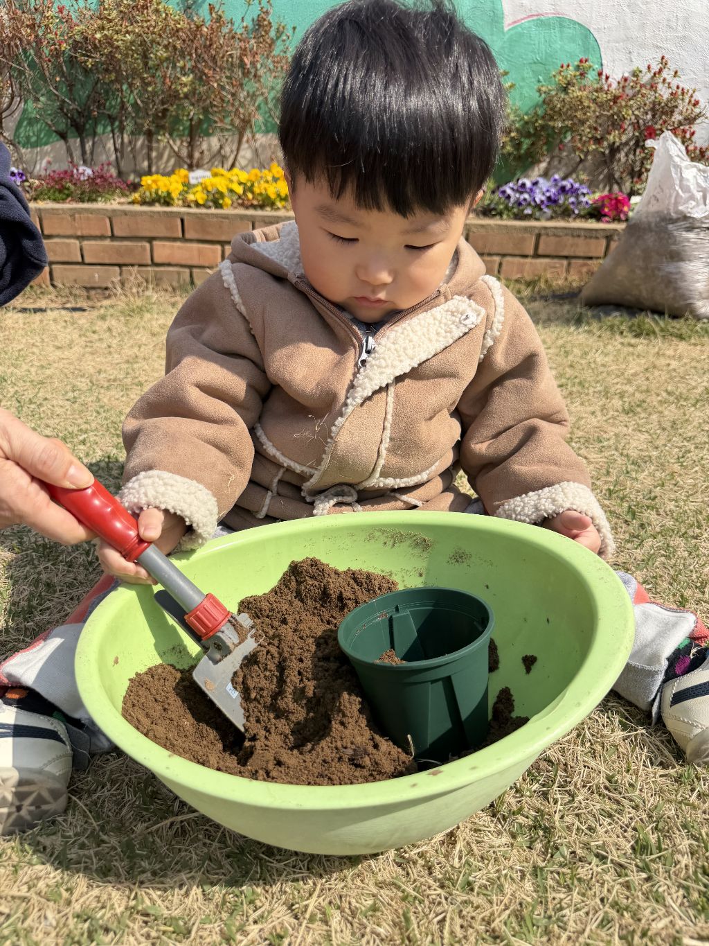 작은 삽을 이용해 흙을 떠서 화분에 넣어보며 손과 눈의 협응력을 기르고, 흙의 촉감을 느껴보는 시간도 가졌습니다.
