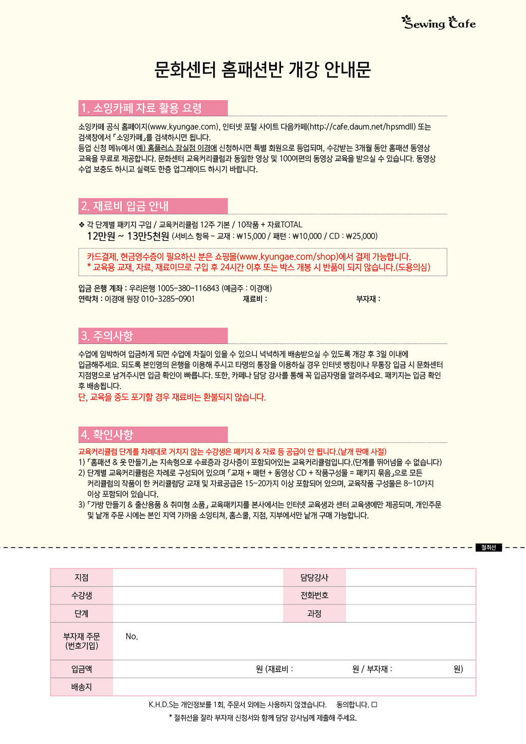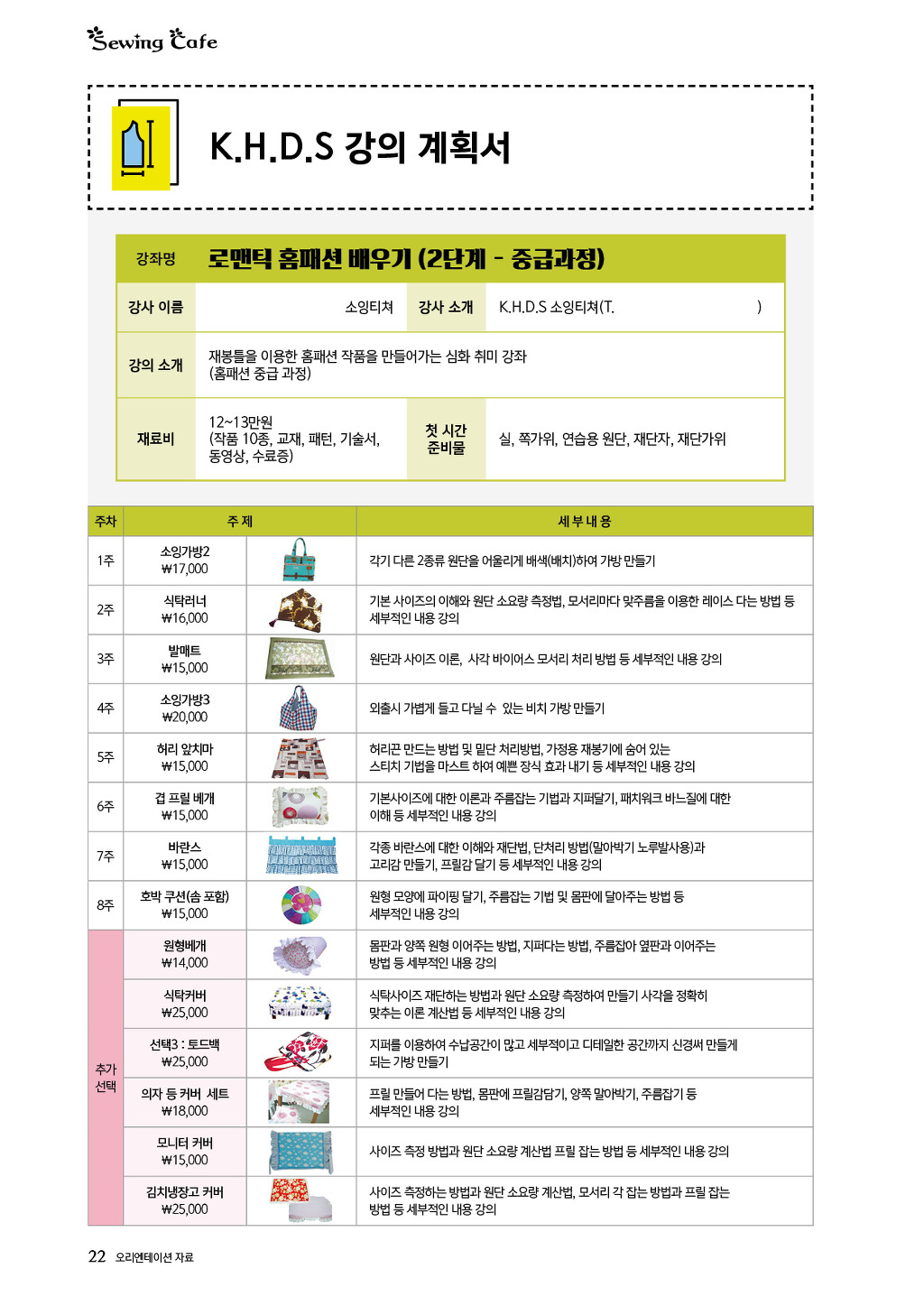 오리엔테이션 교재/1 (소잉강사; 수강생자료) 작성자소잉카페_ΚΗ|작성시간16.08.31|조회수432 목록 댓글 0 글자크기 작게가 글자크기 크게가 소잉카페 홈페이지; http://www.kyungae.com 소잉카페 쇼핑몰; http://sewingcafe.com 다음검색 현재 게시글 추가 기능 열기 북마크 공유하기 신고 센터로 신고 댓글 댓글 0 댓글쓰기 댓글 리스트