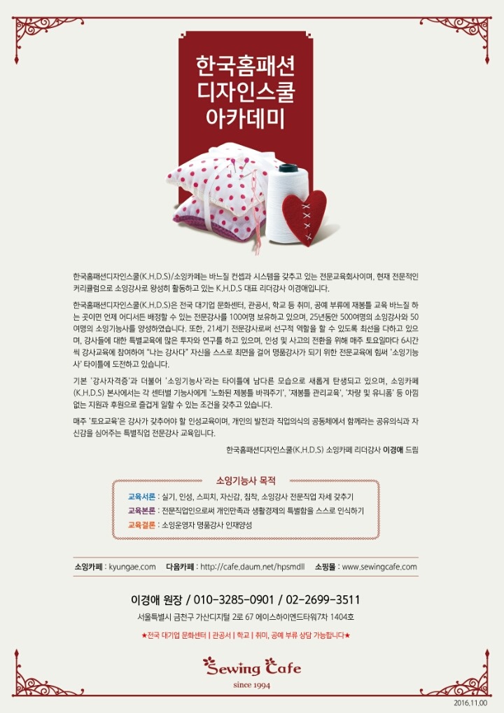 표지변경.소잉카페 (2016.11.15) 작성자소잉카페_ΚΗ|작성시간16.11.15|조회수84 목록 댓글 0 글자크기 작게가 글자크기 크게가 소잉카페 패키지 표지변경. 다음검색 현재 게시글 추가 기능 열기 북마크 공유하기 신고 센터로 신고 댓글 댓글 0 댓글쓰기 댓글 리스트