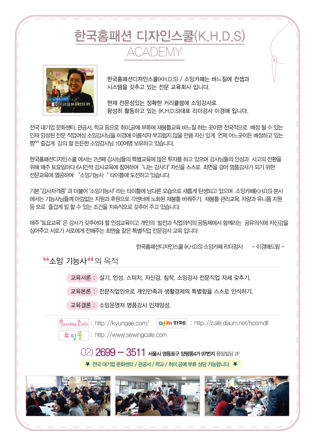 * 모든교재는- 출판사: 한국홈패션디자인스쿨-소잉카페에서 제작된 것이며*** 바느질을 사랑합니까?." 라는 컨셉으로