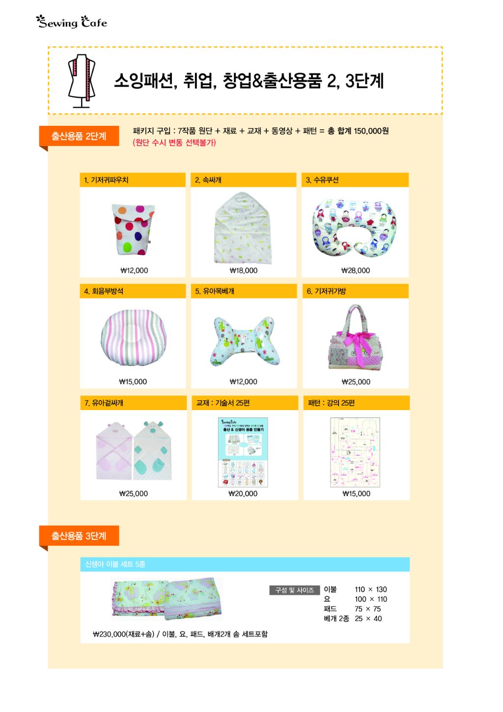 소잉교육절차 1차,2차,3차 로 나누어서 선택가능.
