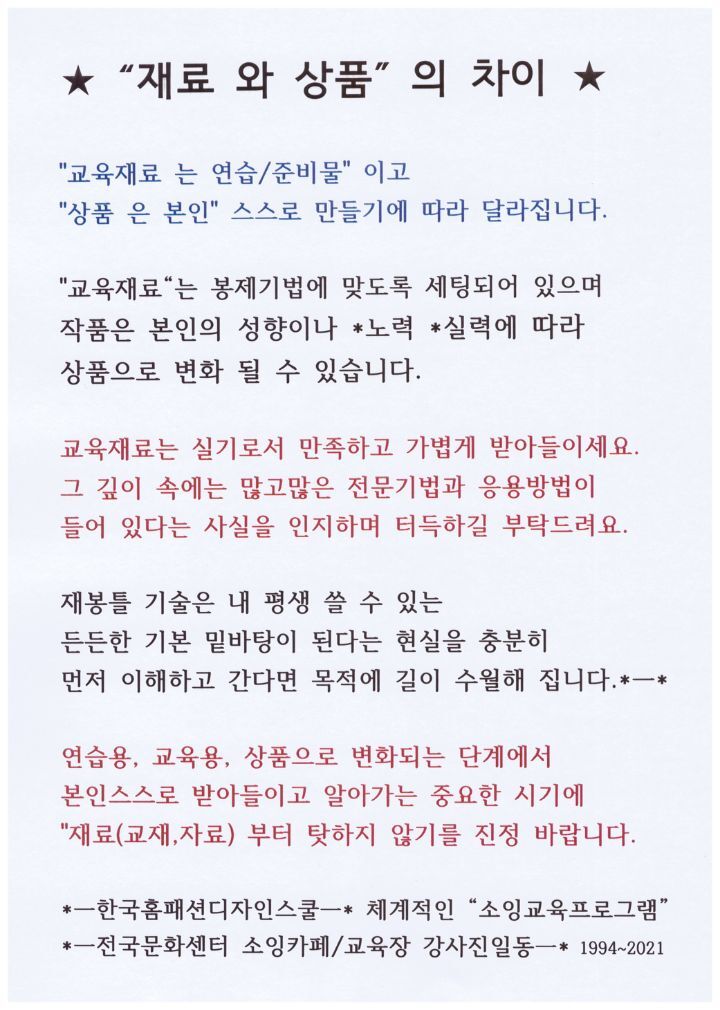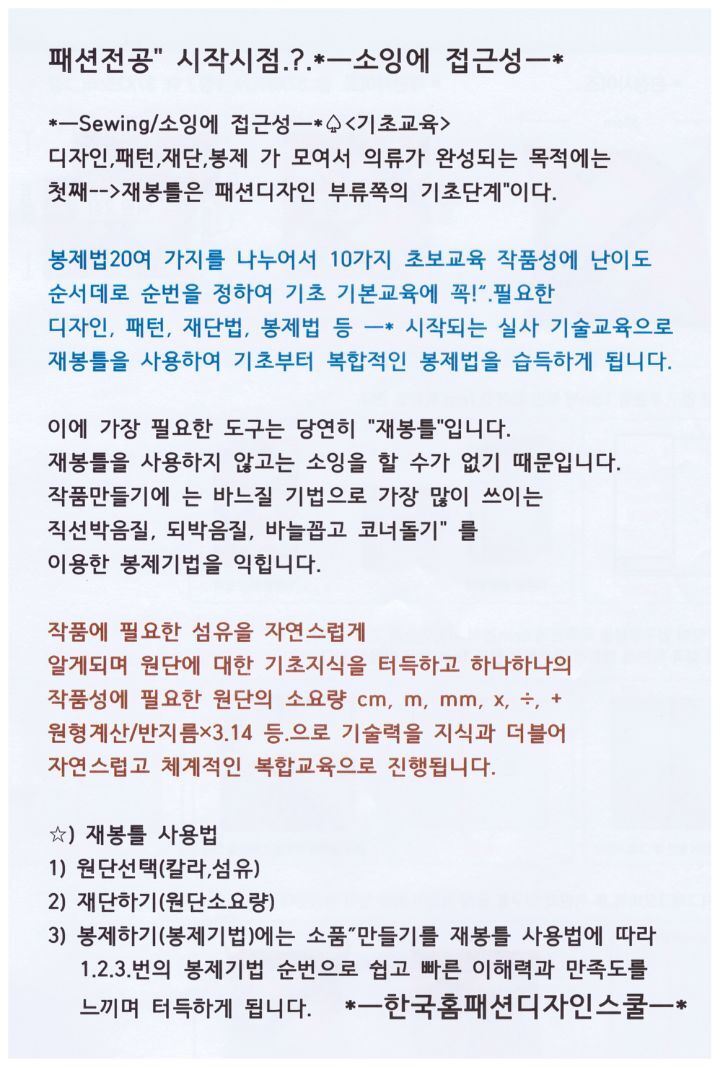 <체계적인 교육프로그램 소잉커리큘렴>